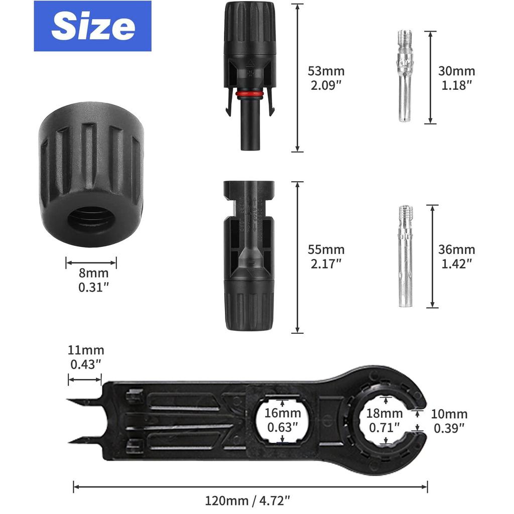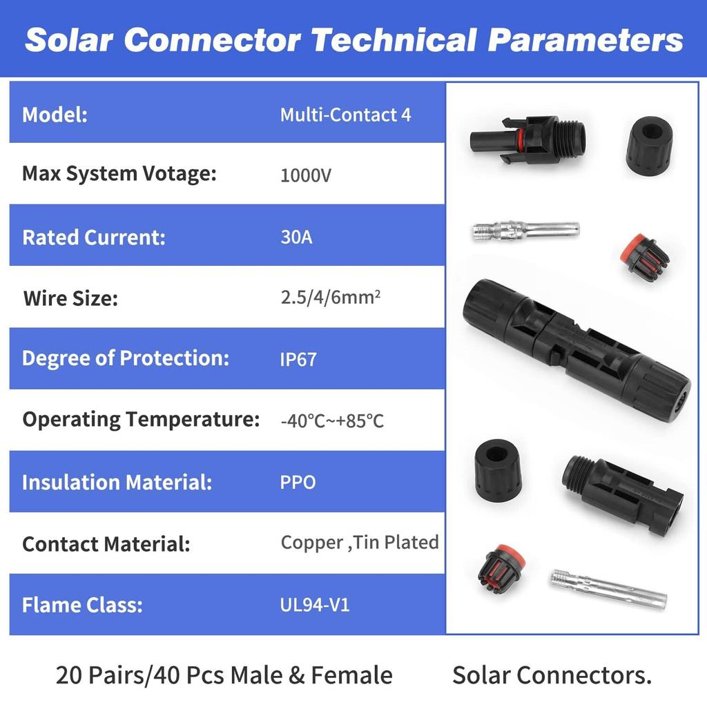 40 шт./20 пар солнечных разъемов с 3 шт. гаечных ключей IP67 водонепроницаемые солнечные панели кабельные разъемы мужской/женский (10AWG)