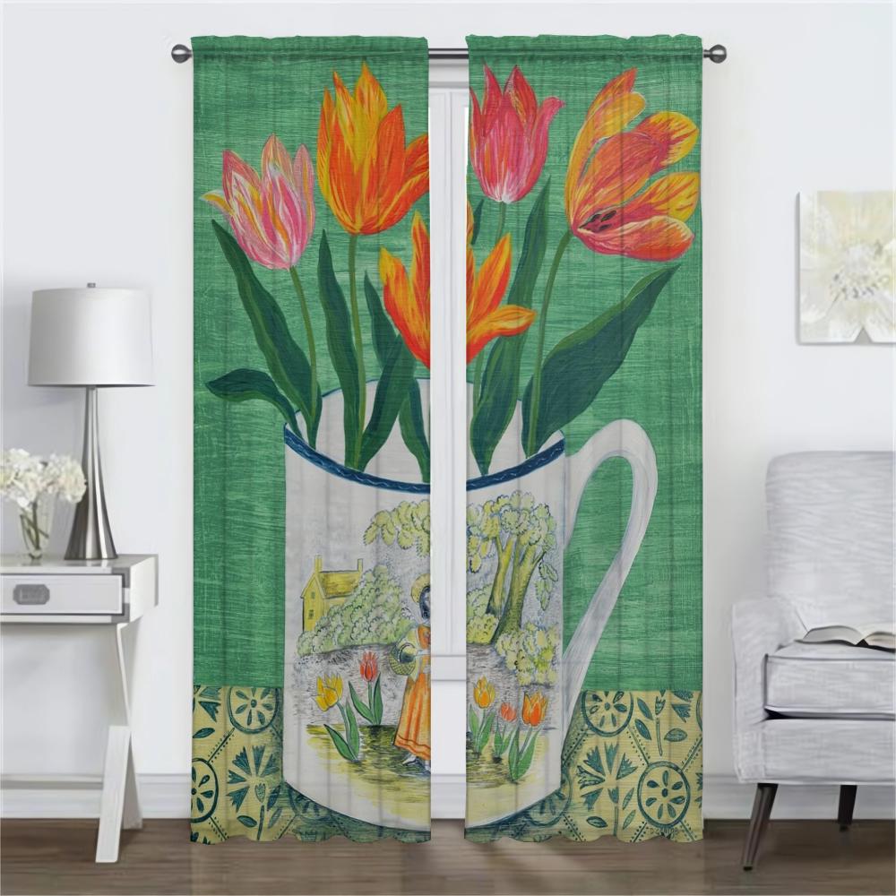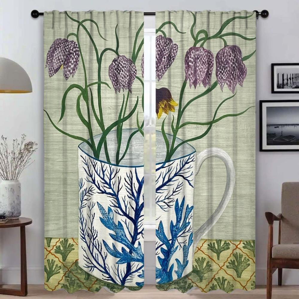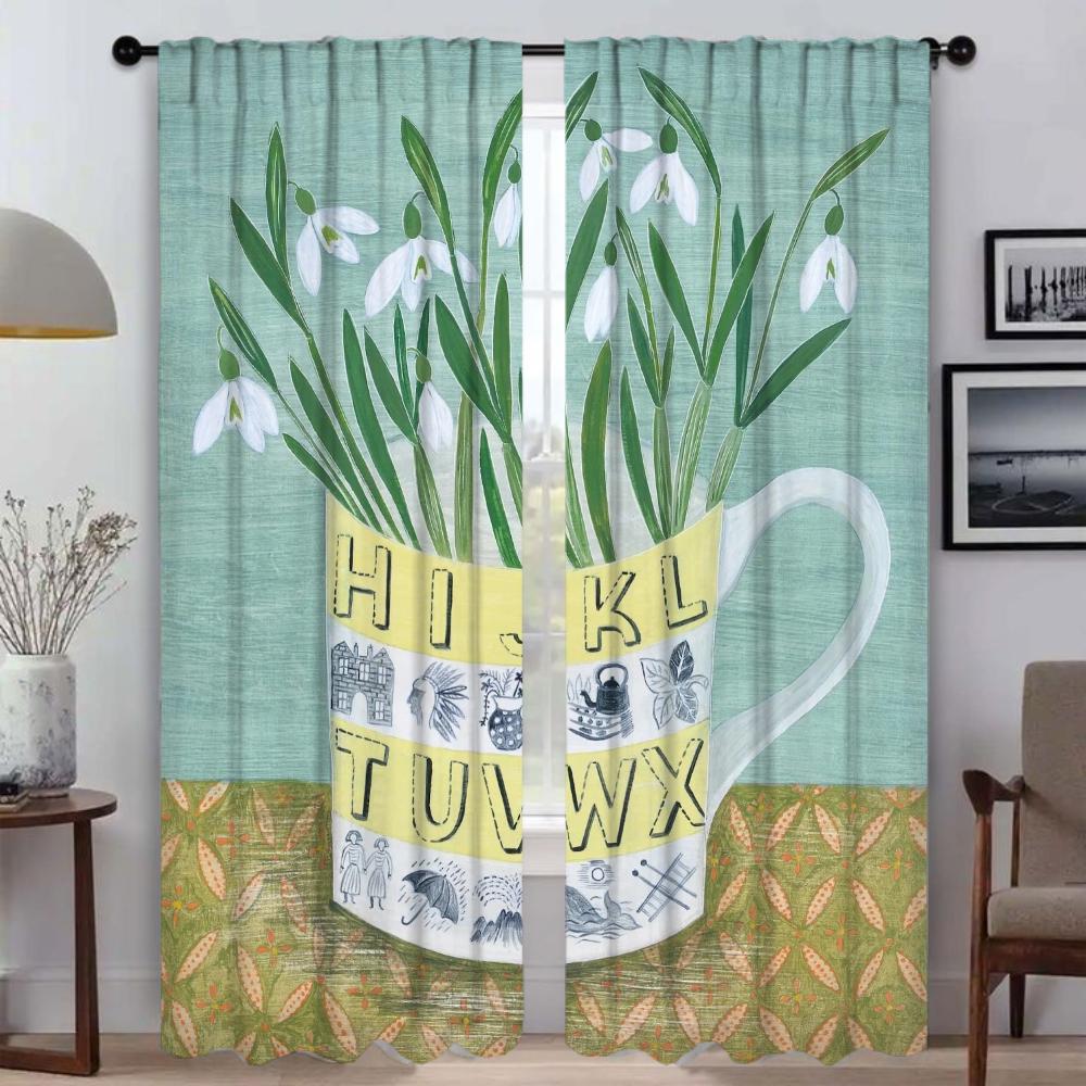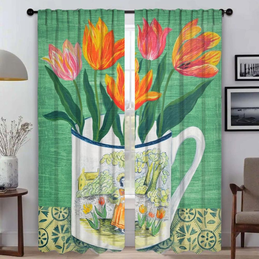Vintage Flower Shades Kitchen Curtains for Living Room Curtain Halloween Decoration Home Interior Curtains 2 Pieces Partition