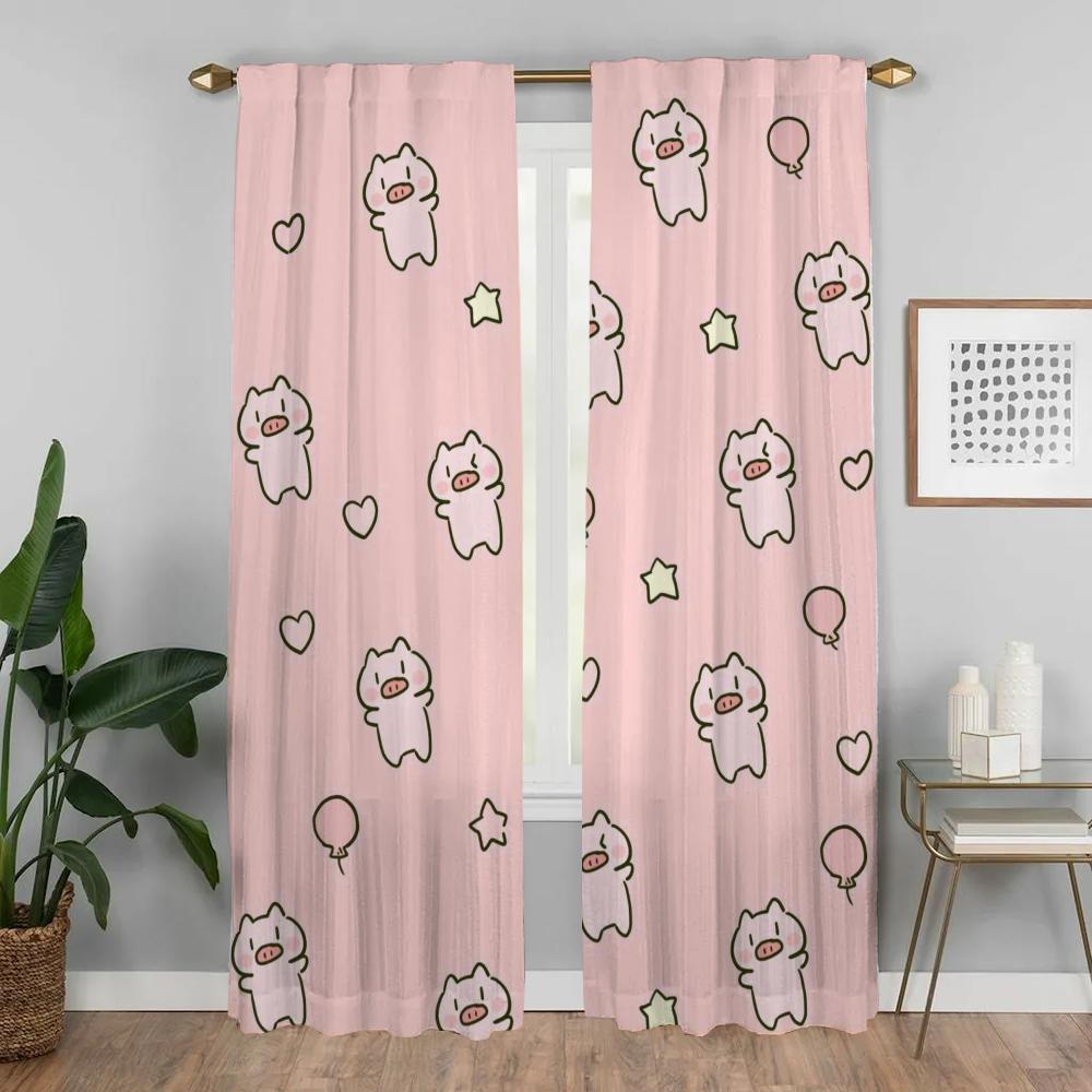 Элегантные шторы для комнаты, тюль в виде розовой свиньи для спальни, современные шторы для гостиной, 2 шт., разделительные шторы для окон