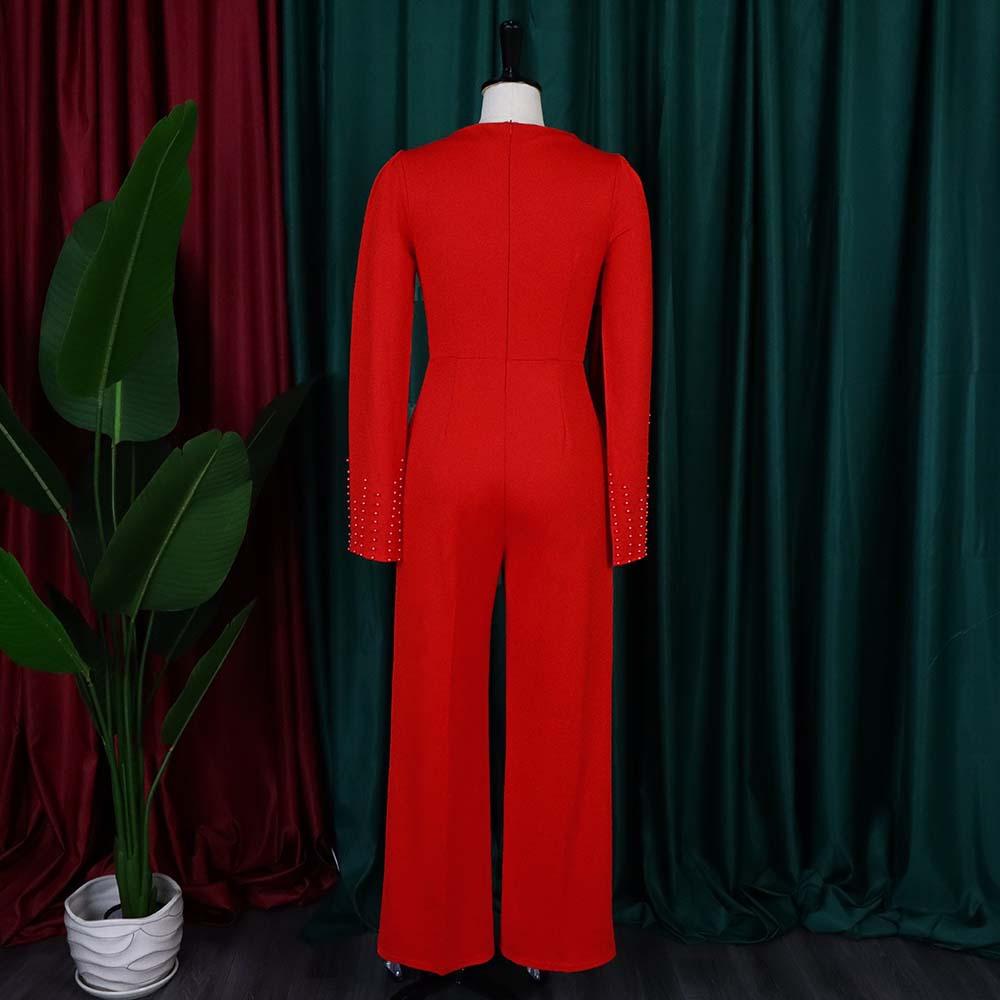 YYFS Женская мода повседневная весна осень однотонный принт длинный рукав квадратный воротник высокая талия брюки комбинезоны и комбинезоны