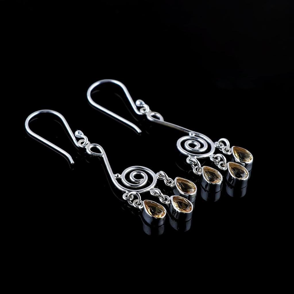 Серьги с драгоценным камнем цитрин, цельные серьги из стерлингового серебра 925 пробы, серьги с драгоценными камнями, дизайнерские серьги ручной работы, подарок для нее