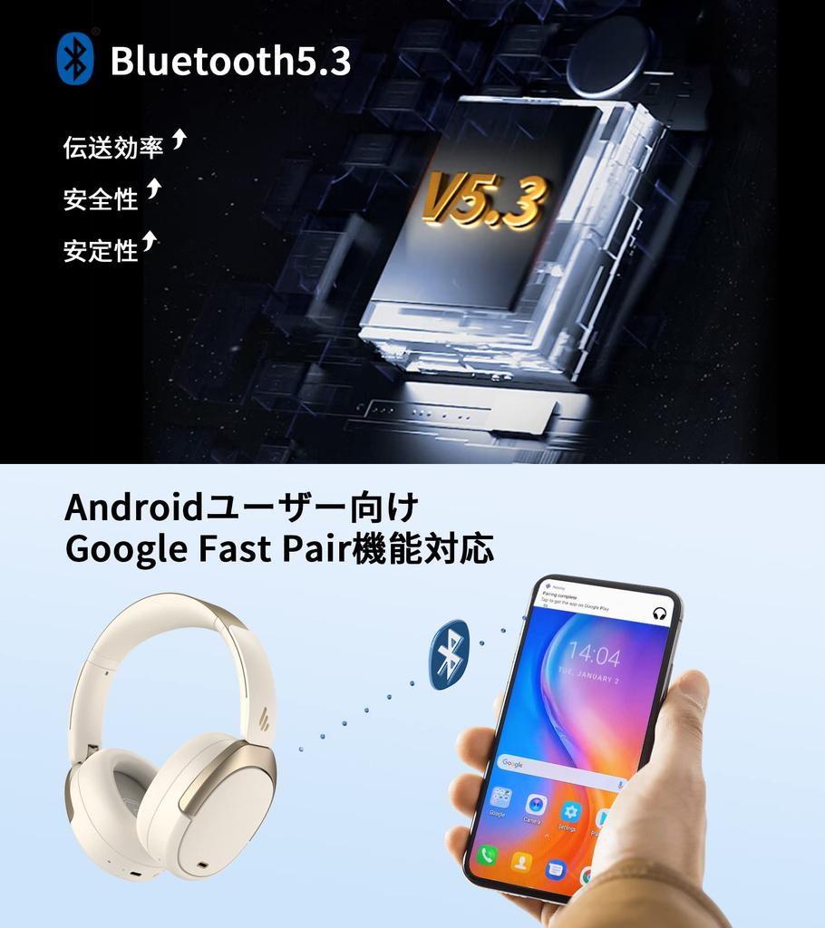 [Совместимость с Multipoint и Google Fast Pair] Наушники EdifierWH950NB оснащены усовершенствованной версией Bluetooth 5.3 и имеют значительно улучшенную стабильность, диапазон соединения и скорость передачи данных, устраняя проблемы задержки звука, характерные для обычных продуктов, и устраняя широкий спектр проблем, таких как пропуски, проблемы со связью и прерывания.. Также возможно подключение к двум устройствам одновременно.. Нет необходимости каждый раз переключать Bluetooth-подключения, и вы можете легко переключаться между такими задачами, как прослушивание музыки на смартфоне и веб-конференции на ПК.. Он также поддерживает функцию Google Fast Pair для пользователей Android.. Легко и быстро подключите свое Android-устройство к Bluetooth одним легким нажатием и даже посмотрите, где вы в последний раз видели свое устройство.