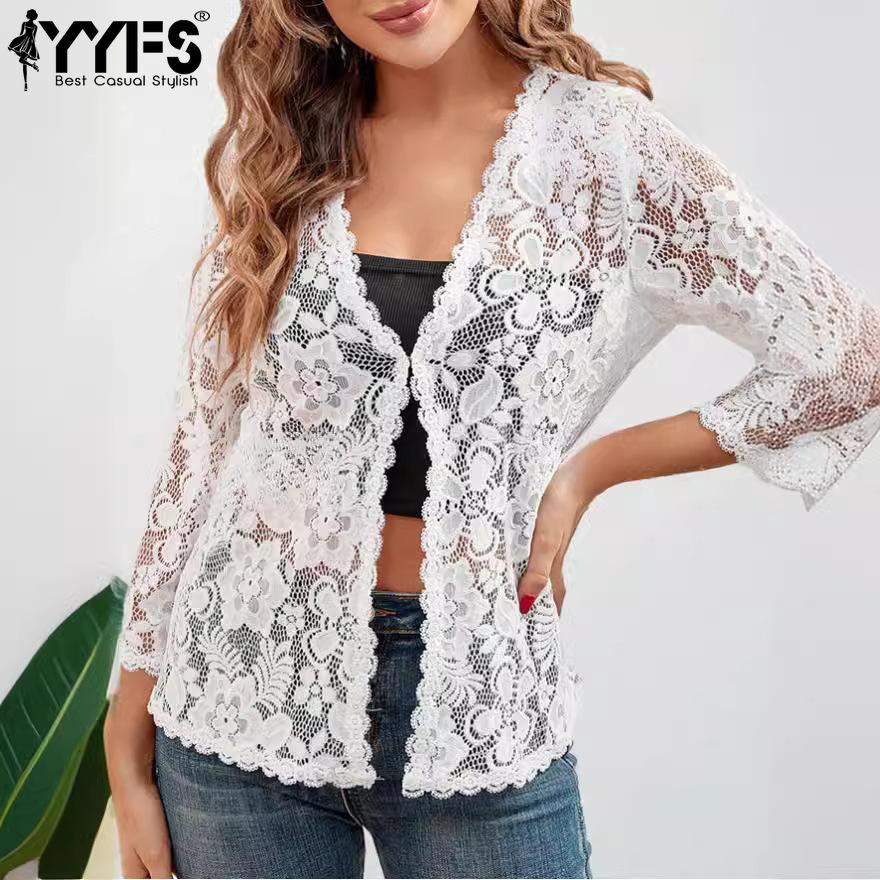 YYFS Женские модные повседневные летние весенние однотонные блузки и рубашки с рукавами 3/4 и v-образным вырезом с принтом