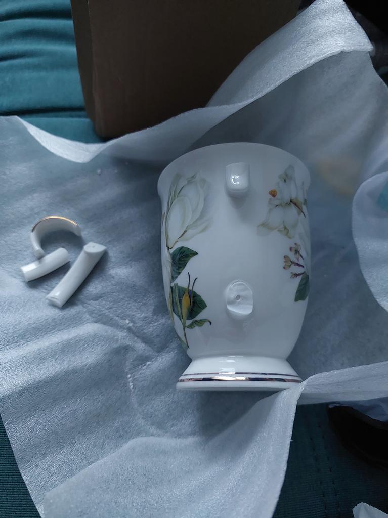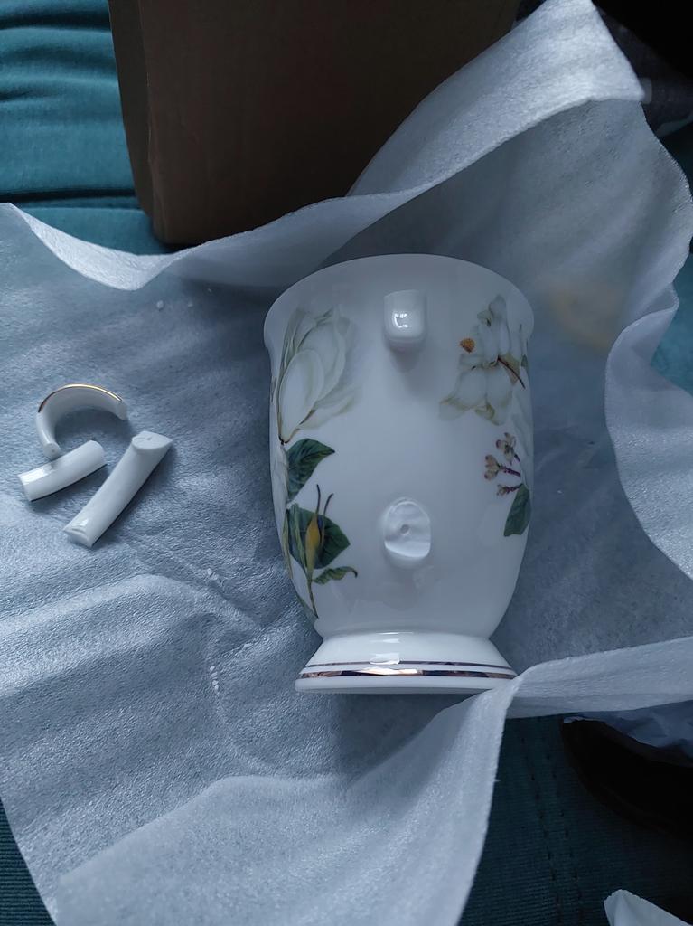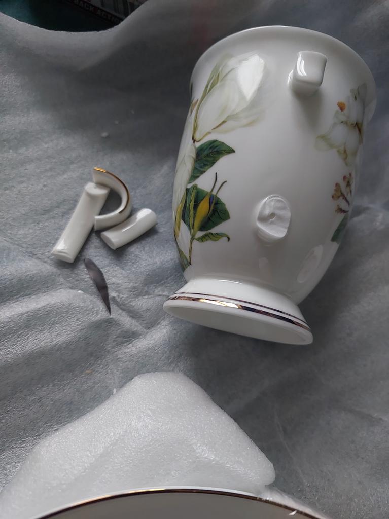 Заказ ждала долго. Получила на почте 10.01.2026. Но к сожалению у кружки ручка сломана. Упаковано плохо. Положили в коробку. Но кружка в коробке болталась. Расстроилась, прошу вернуть деньги. Заказывала тарелки, они пришли очень хорошо упакованные. Ранее заказывала чашки и чайник, они тоже пришли без никаких проблем, тоже были очень хорошо упакованы. Очень прошу вернуть деньги, хочу заказать еще раз. Но очень прошу хорошо упаковать товар. Просто очень жалко, что приходит разбитый товар.