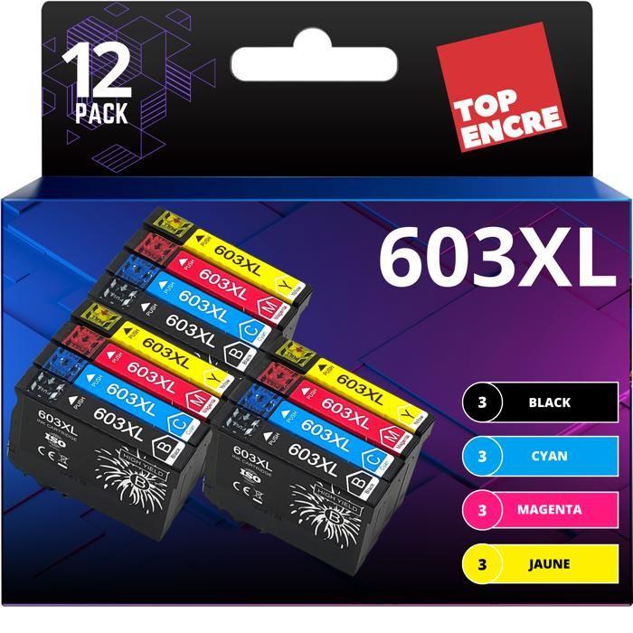 Чернильные картриджи - TOPENCRE - 603XL - Упаковка из 12 штук - Высокая емкость - Яркие цвета - Совместимый Epson