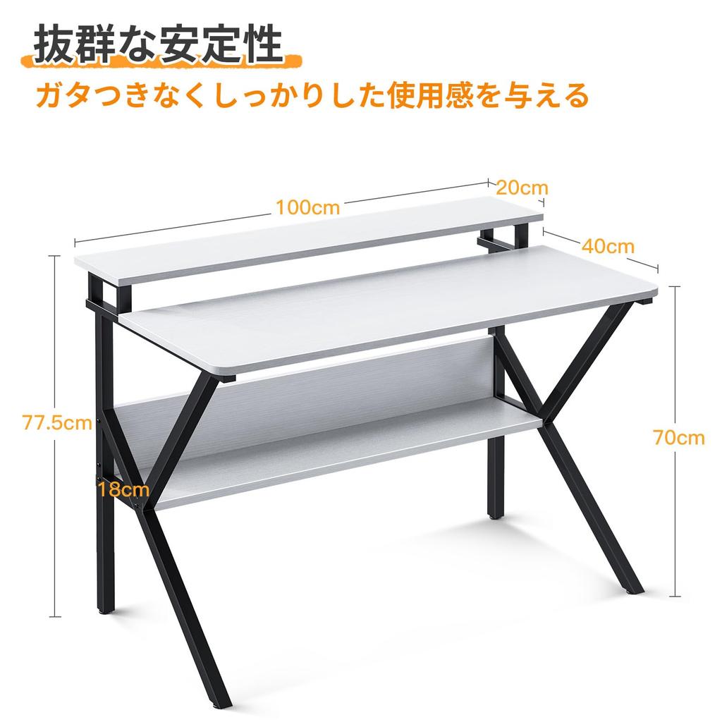 Компьютерный стол KKL с монитором Ширина 100 см x Глубина ПК Игровое пространство для удаленной работы Жизнь Удобный стол с совместимым монитором Белая подставка, 60 см, стол,