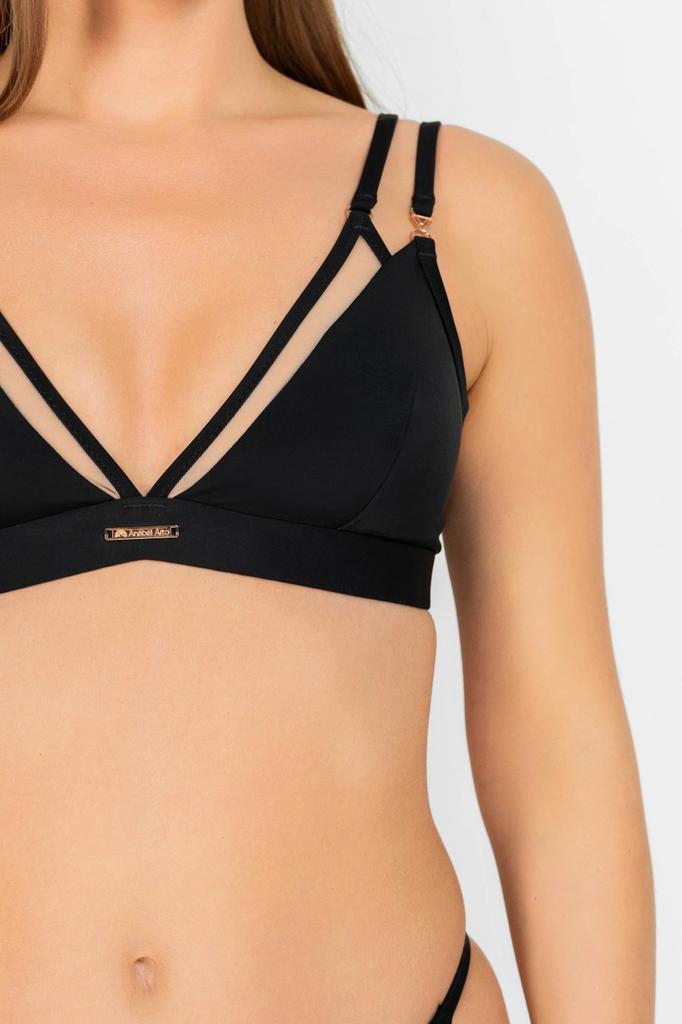 Бюстгальтер софт с треугольными чашками с имитацией "2 в 1", из микрофибры и сетки: