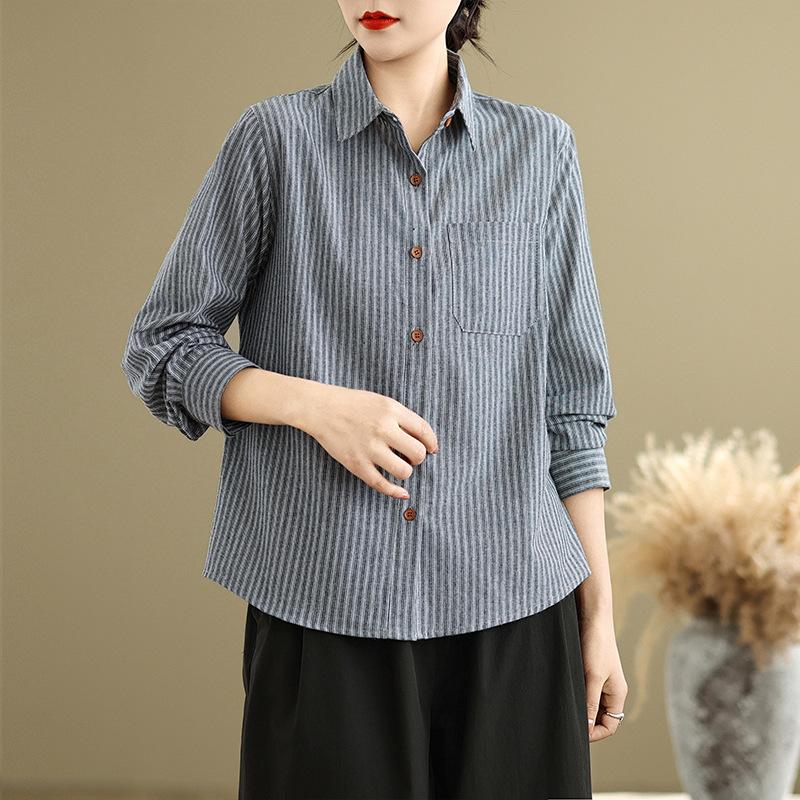 Весенняя художественная свободная рубашка с полосатым лацканом и длинными рукавами, женская рубашка, топ, блузки и рубашки — купить товар онлайн с бесплатной доставкой по всему миру!