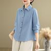 Весенняя художественная свободная рубашка с полосатым лацканом и длинными рукавами, женская рубашка, топ, блузки и рубашки