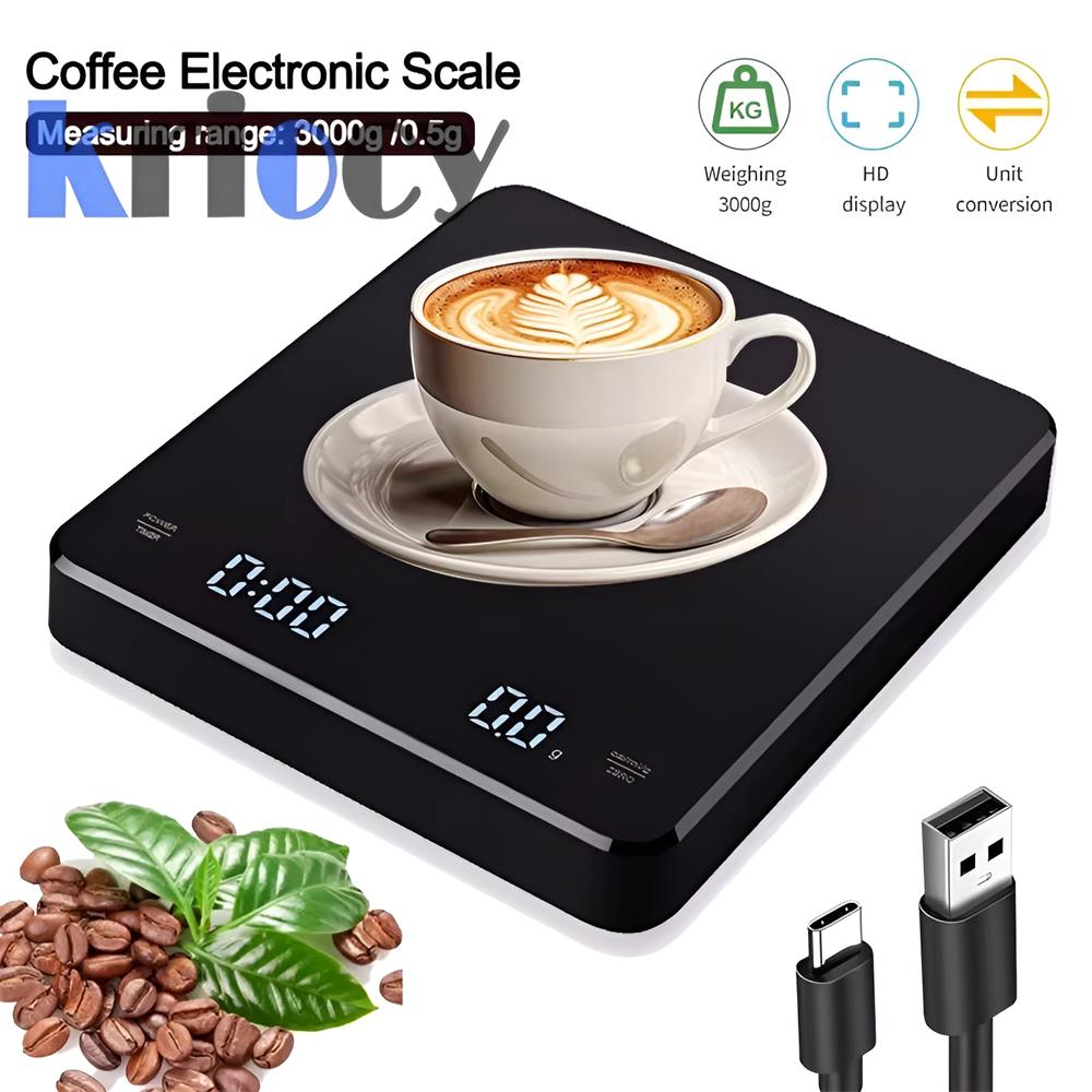 Цифровые кухонные весы для кофе, высокоточные перезаряжаемые домашние электронные весы с таймером, нержавеющая сталь, умные весы для граммов