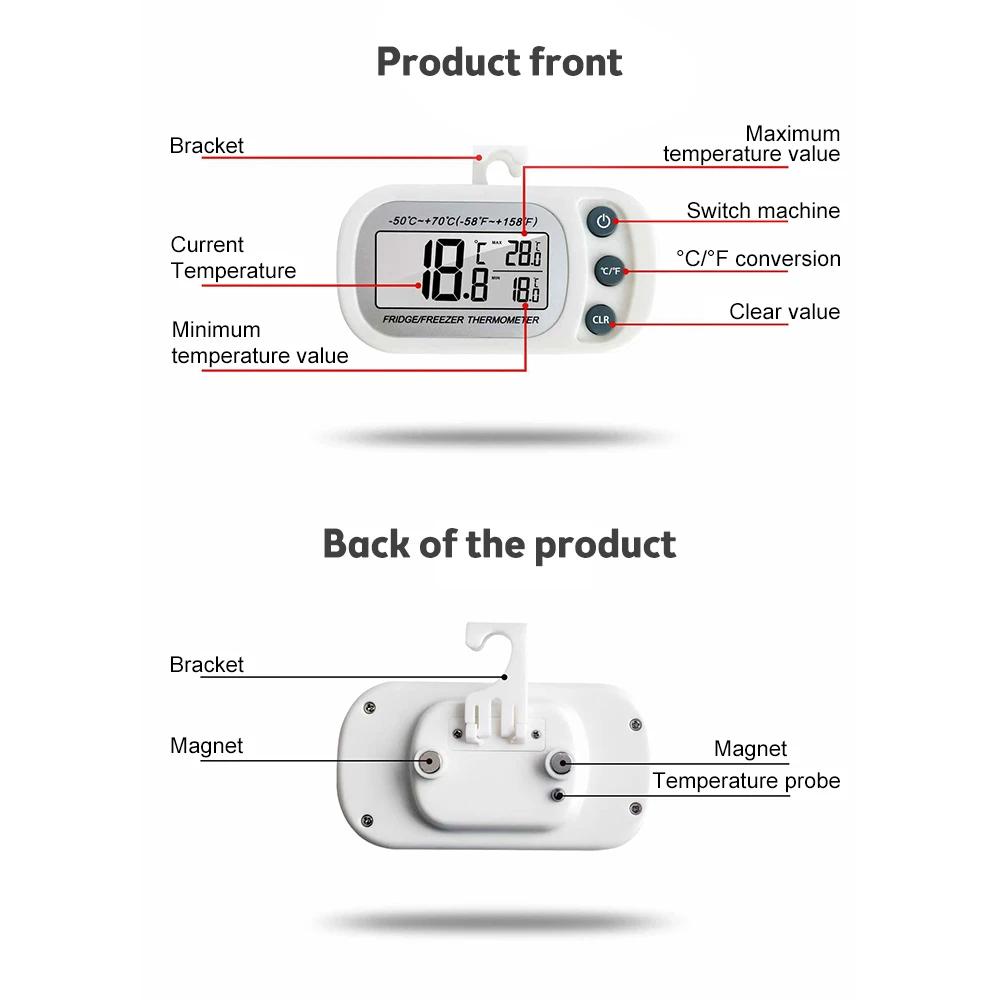 Термометр для холодильника с крючком, влагозащищенный, для холодильника, морозильника, электрический цифровой термометр, монитор температуры, ЖК-дисплей