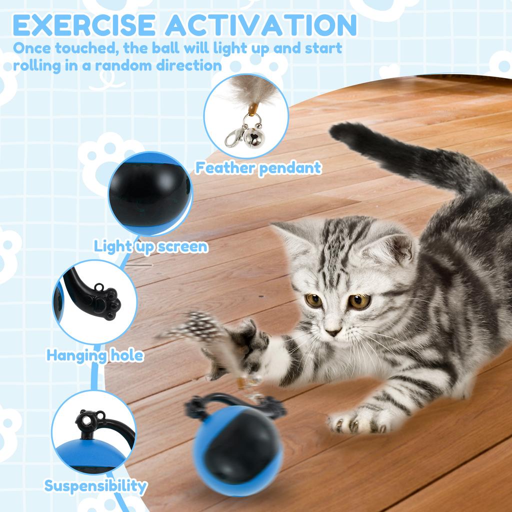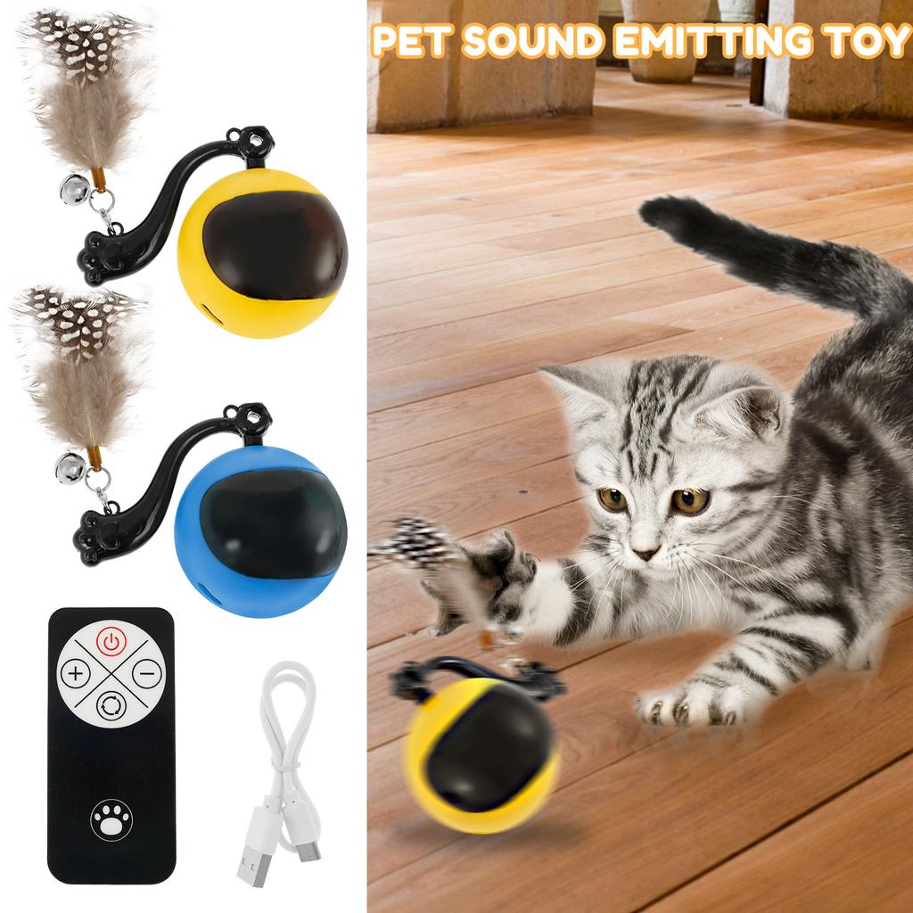 Электрическая игрушка для кошек «Умный мяч» для кошек с дистанционным управлением, активируемая движением, дрессировка перьев, имитация мыши, игрушки для домашних животных