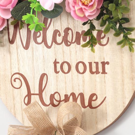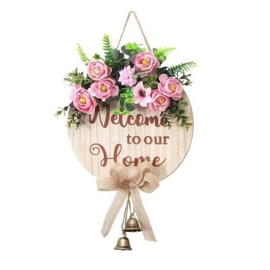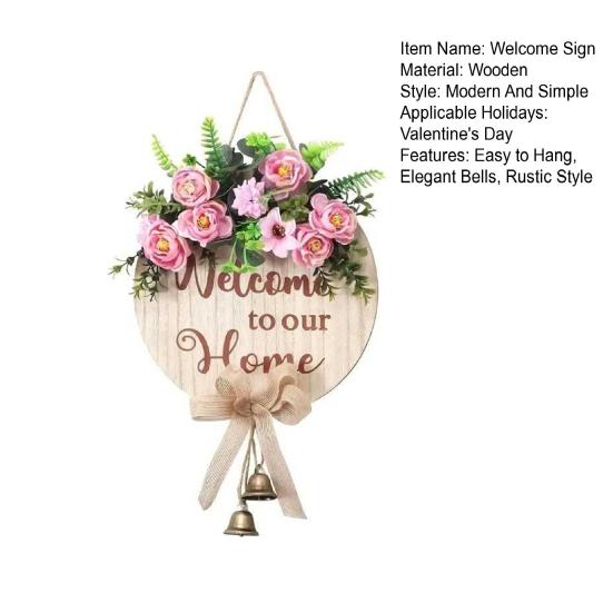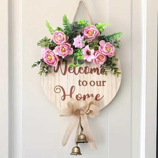 Украсьте свой дом этой очаровательной табличкой с приветствием. Изготовленный из высококачественной древесины, этот знак долговечен и устойчив к деформации и трещинам.. Изысканное мастерство и сложные детали делают его выдающимся элементом декора вашей входной двери.. Круглая деревянная вывеска украшена искусственными цветами и мелодичными колокольчиками, что создает уникальный и привлекающий внимание дизайн, который произведет впечатление на посетителей..