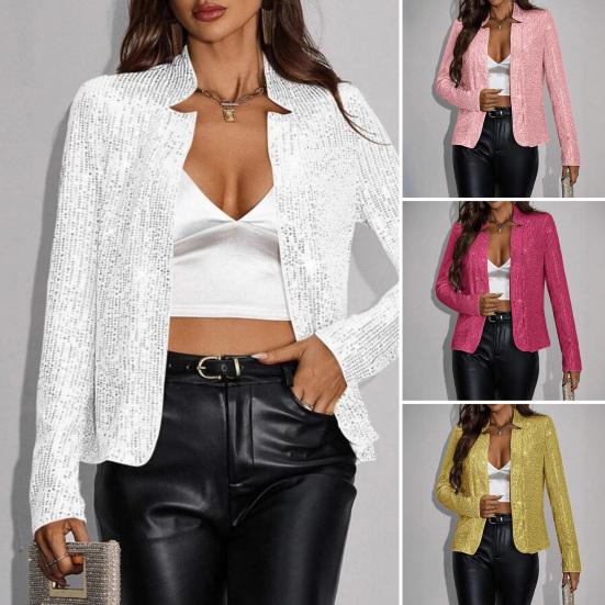 Женский кардиган, пальто с воротником-стойкой, короткий, с длинными рукавами, однотонная куртка с пайетками для клуба, вечеринки, выпускного, облегающая верхняя одежда для поездок на работу — купить товар онлайн с бесплатной доставкой по всему миру!