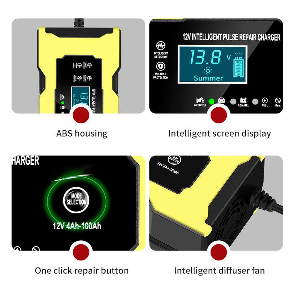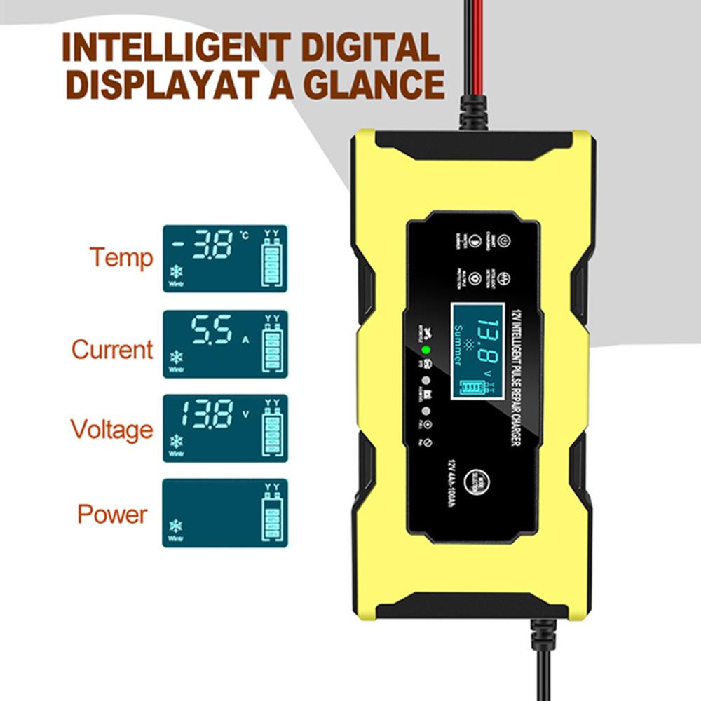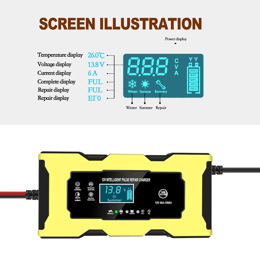 Автомобильное зарядное устройство 12 В / 6 А Автоматическое интеллектуальное зарядное устройство для аккумулятора с ЖК-дисплеем Импульсное ремонтное зарядное устройство для автомобиля и мотоцикла