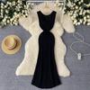 Foamlina Pure Color Knitting Dress для женщин Элегантный V-образный вырез без рукавов Летняя мода Тонкий вырез вечернее длинное платье