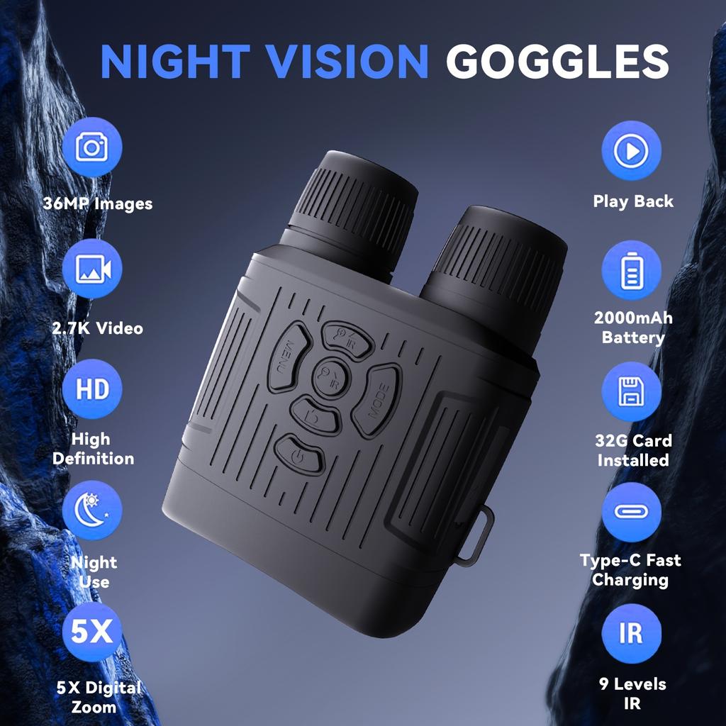 Бинокль ночного видения для использования на открытом воздухе, инфракрасный ночной прибор ночного видения для взрослых, для кемпинга, охоты и безопасности