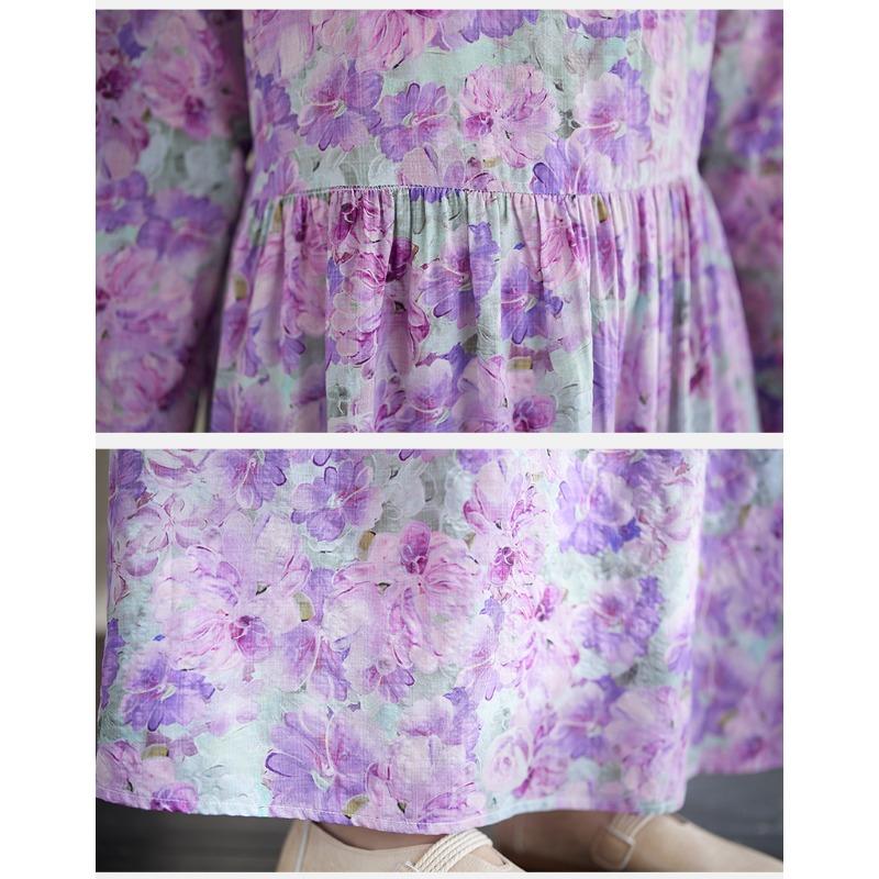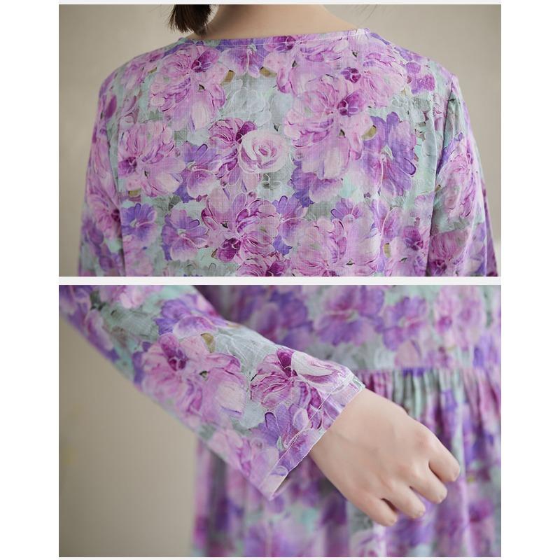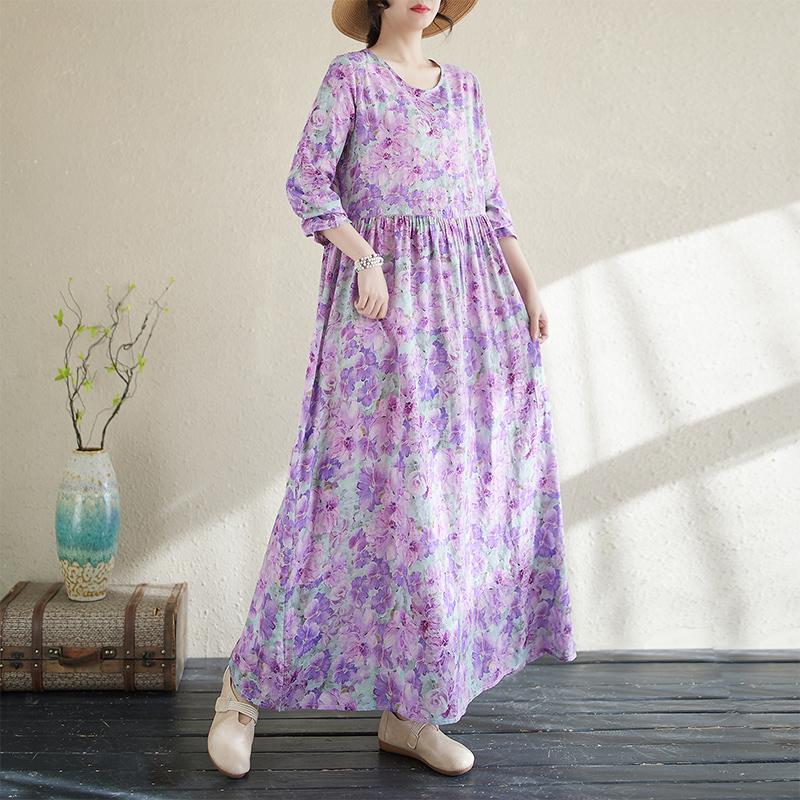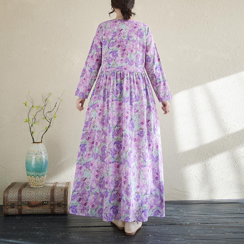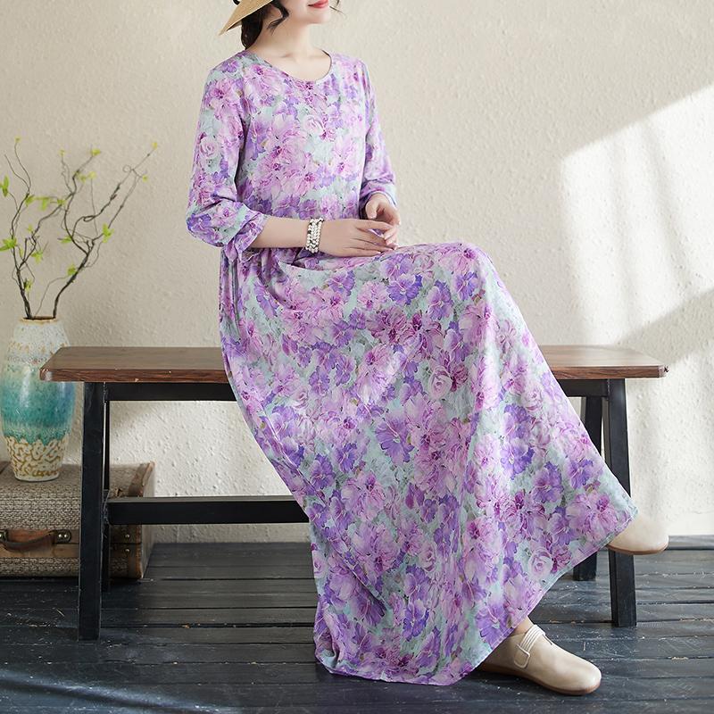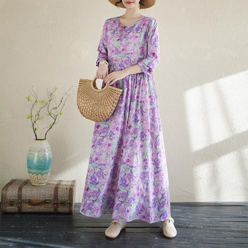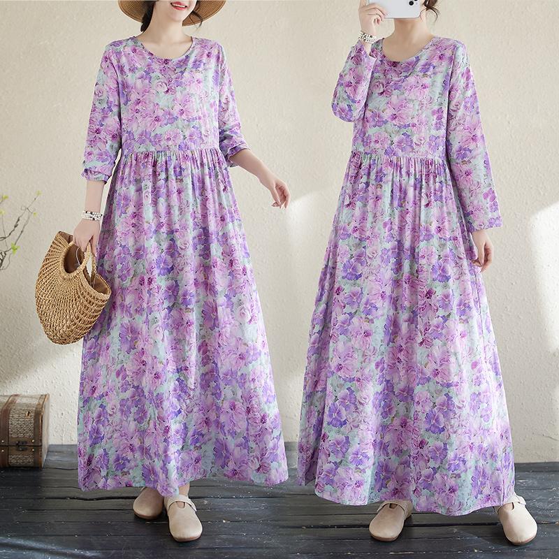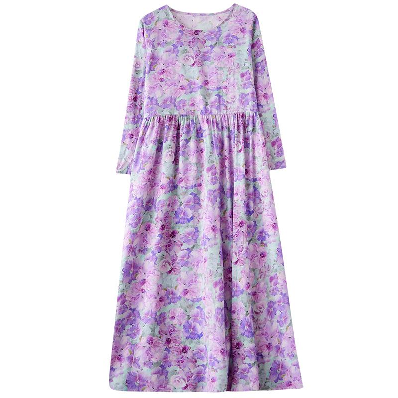 DIMANAF 2025 Женское Новое Весеннее Длинное Платье Плюс Размер Винтаж Базовый Длинный Рукав Свободный Повседневный Цветочный Макси O-образный Вырез