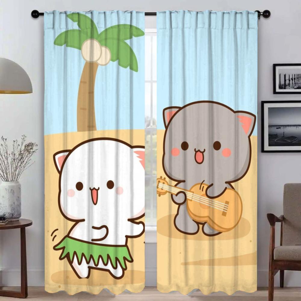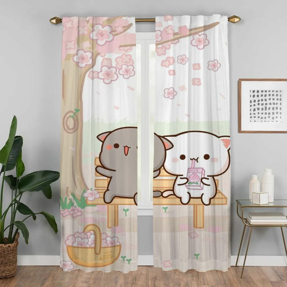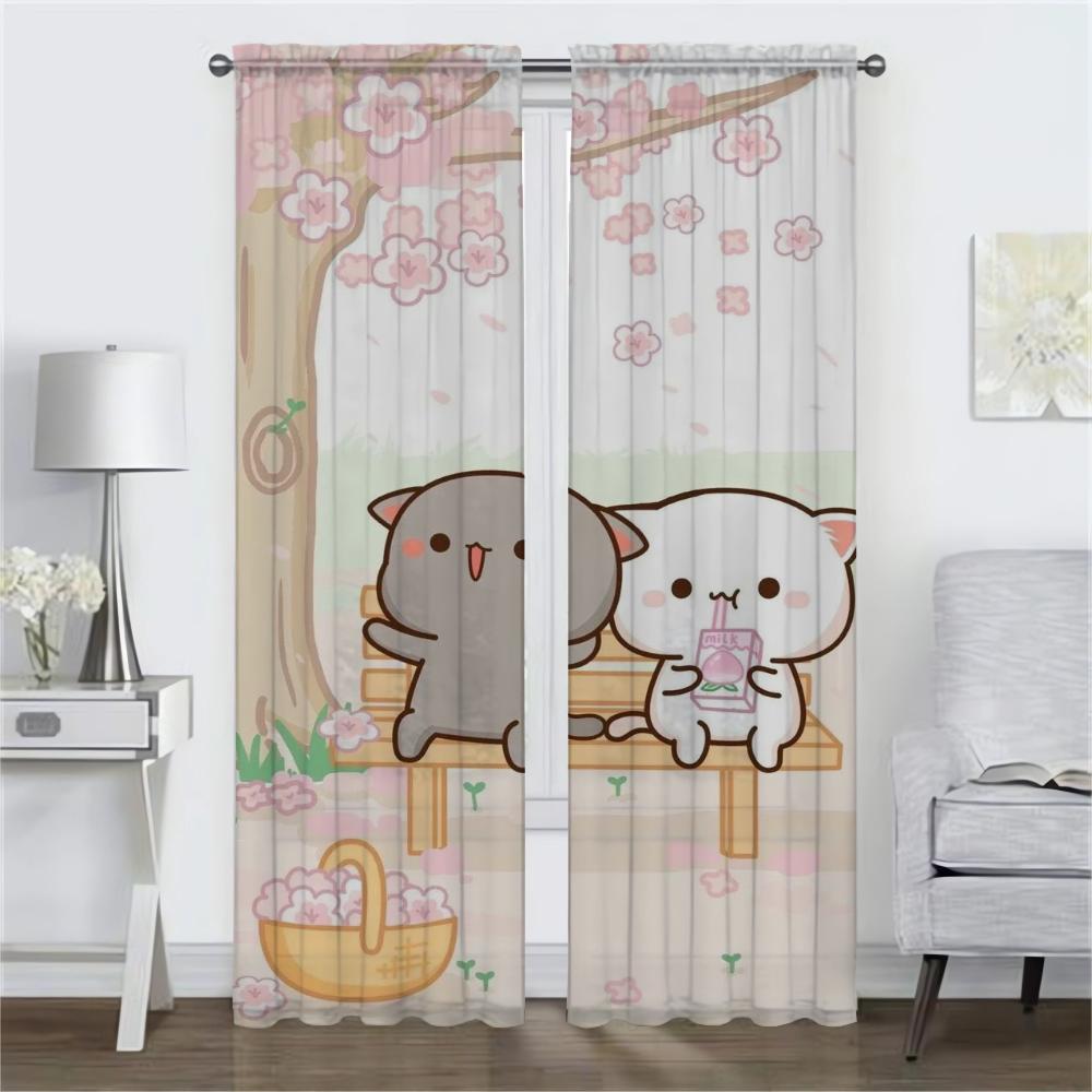 Персиковый моти кот затемняющие шторы для комнаты 2 панели шторы для спальни украшение на Хэллоуин перегородка домашний интерьер шторы