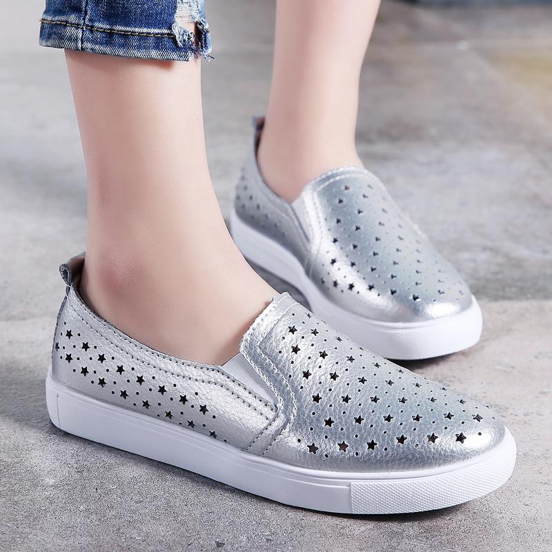 Женские кроссовки повседневные летние полые слипоны для улицы школьные студенческие серебристые туфли большого размера