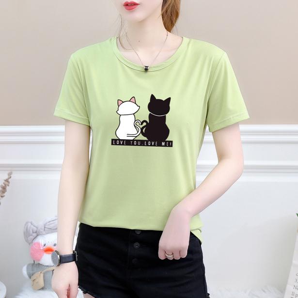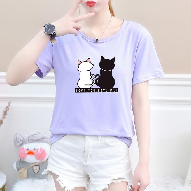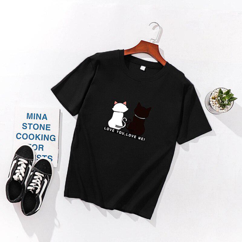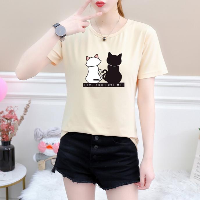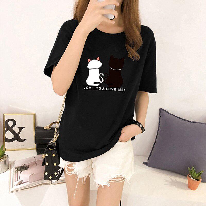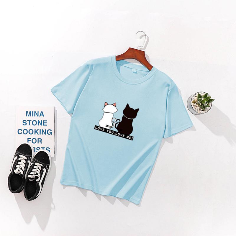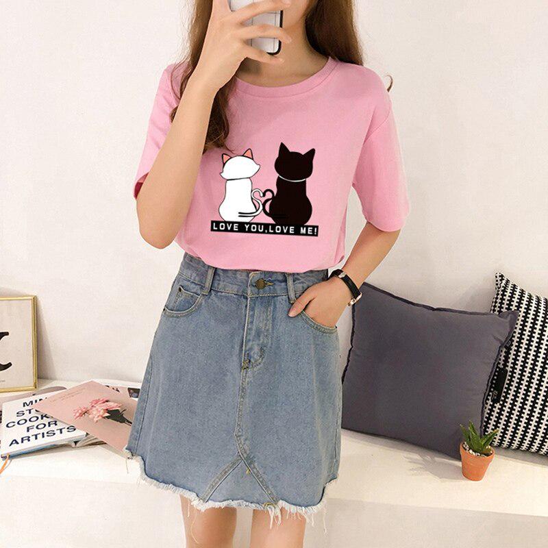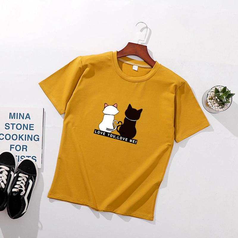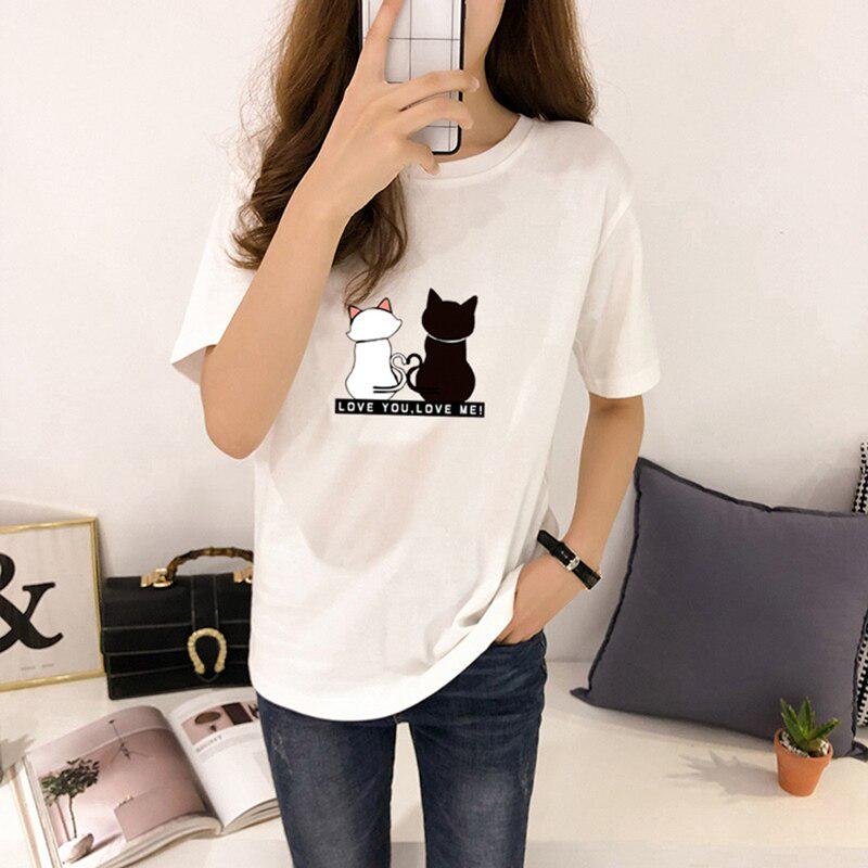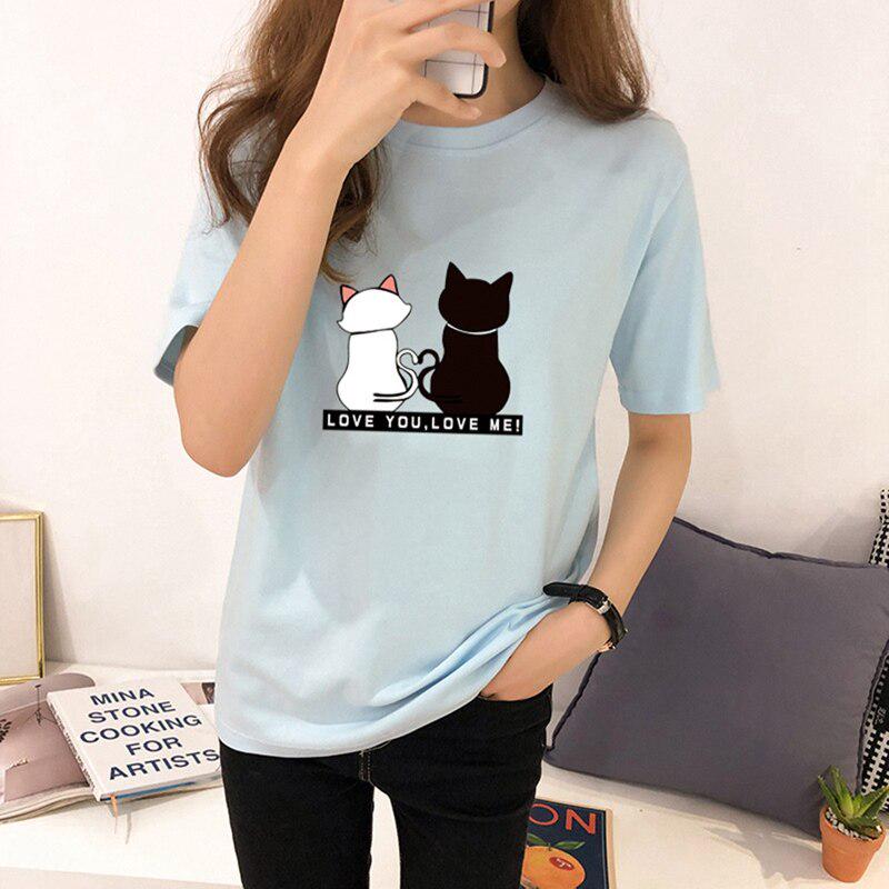 Женские футболки с принтом кошек, летние футболки с коротким рукавом и круглым вырезом, корейские женские топы и футболки Harajuku, свободные