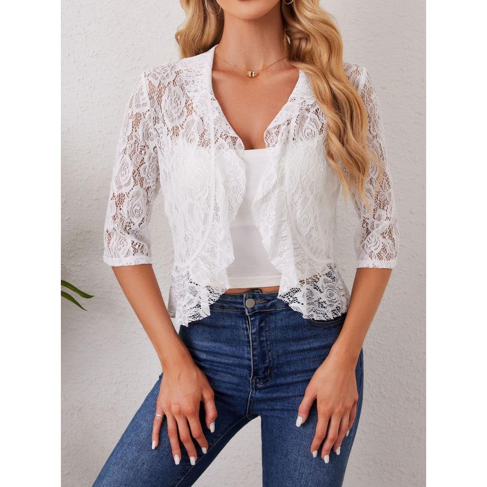 Женский элегантный модный короткий кружевной топ с открытыми лацканами и оборками — купить товар онлайн с бесплатной доставкой по всему миру!
