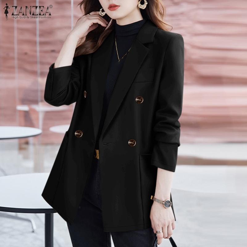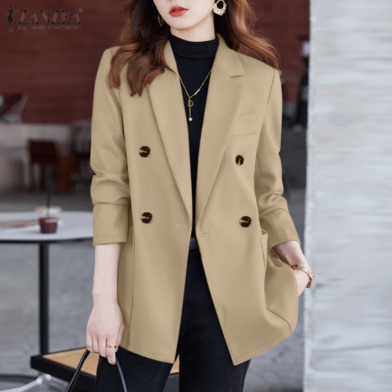 ZANZEA Женский повседневный тонкий кардиган с длинным рукавом и отложным воротником, блейзер