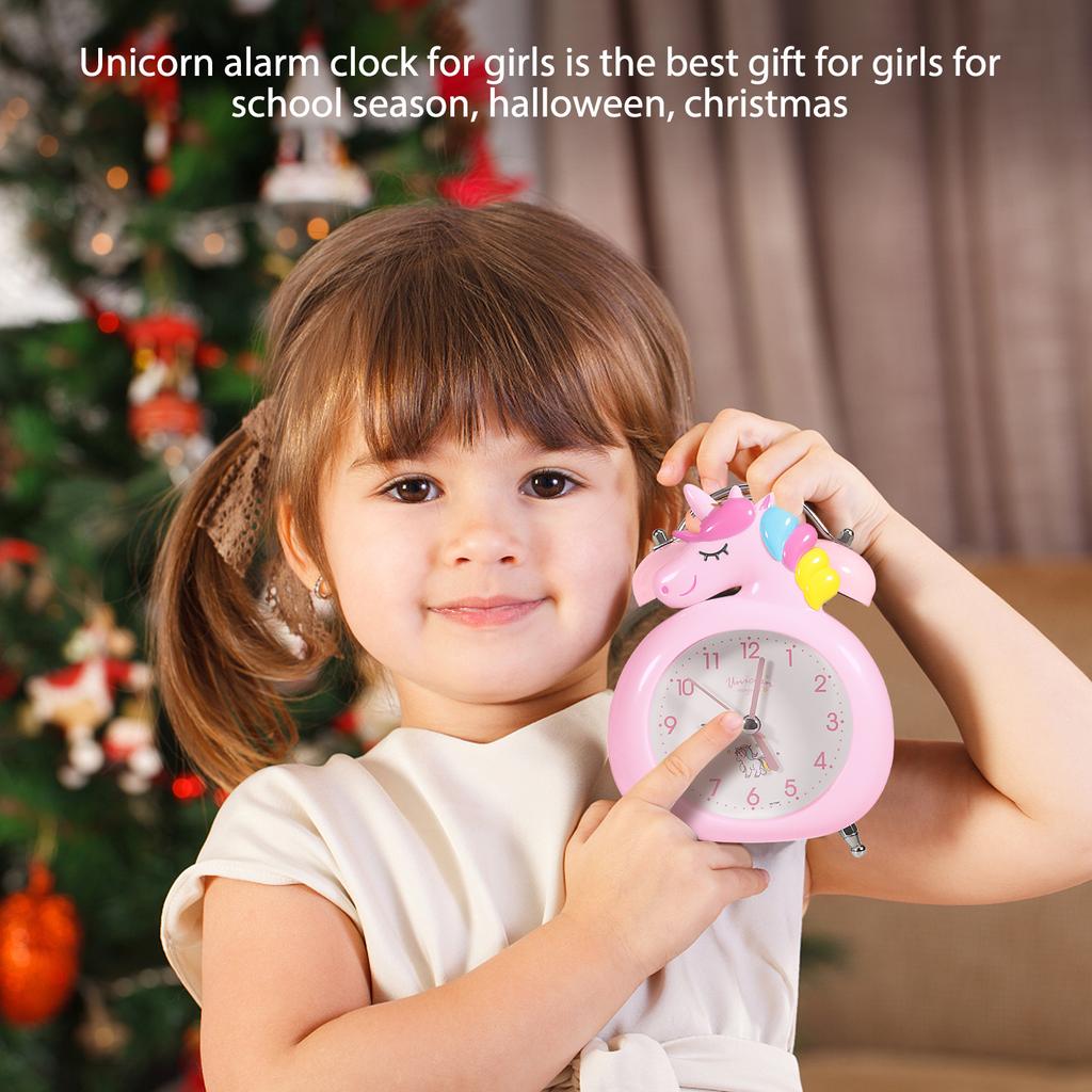 Милый детский будильник-единорог с двумя колокольчиками и подсветкой, настольные часы для девочек, украшение для спальни, рождественские подарки для детей