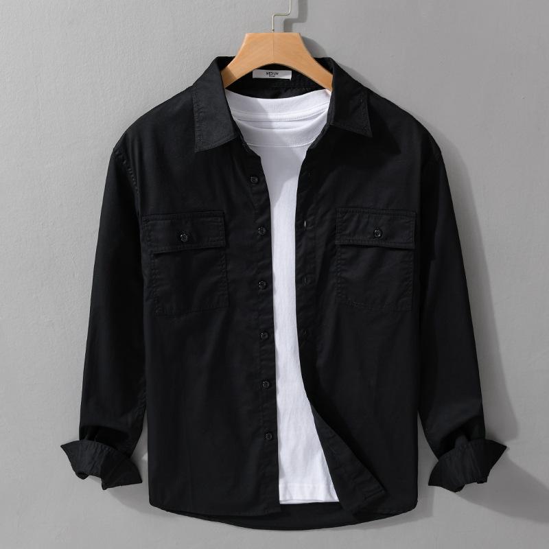 Весенние и летние мужские рубашки с длинным рукавом, молодежная корейская версия, рабочая одежда, чистый хлопок, повседневная рубашка с воротником-лацканами и двумя карманами