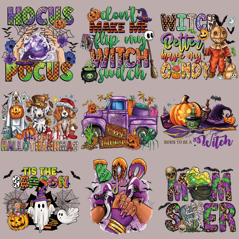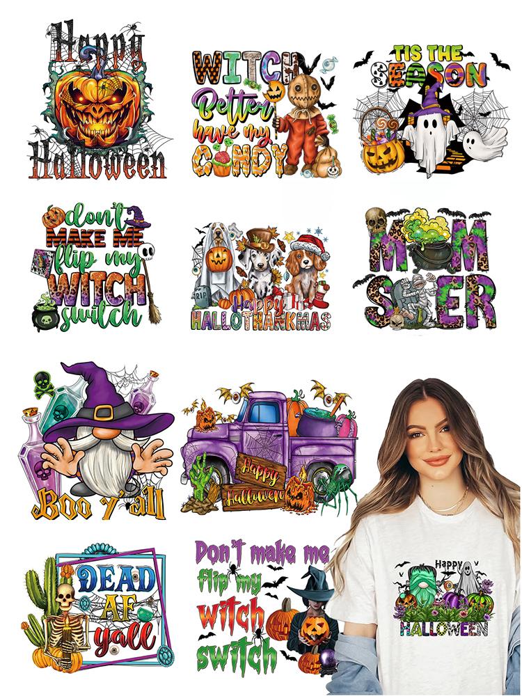 Переводная картинка на Хэллоуин, 15 листов DTF-переводной картинки, готовой к печати, ведьма, призрак, тыква, наклейка на футболку, толстовку своими руками
