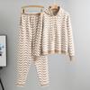 Женский осенний модный повседневный свитер с капюшоном в волнистую полоску и спортивные штаны, комплект из двух предметов