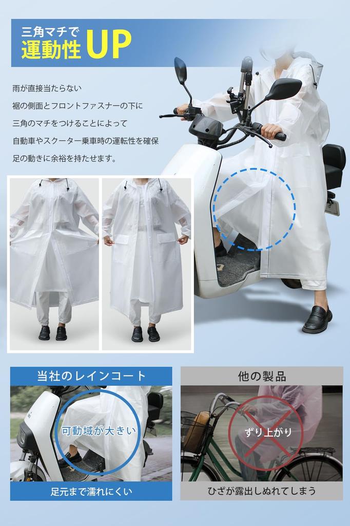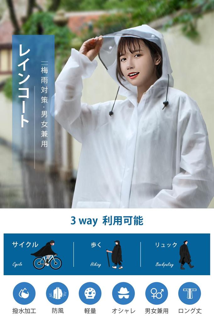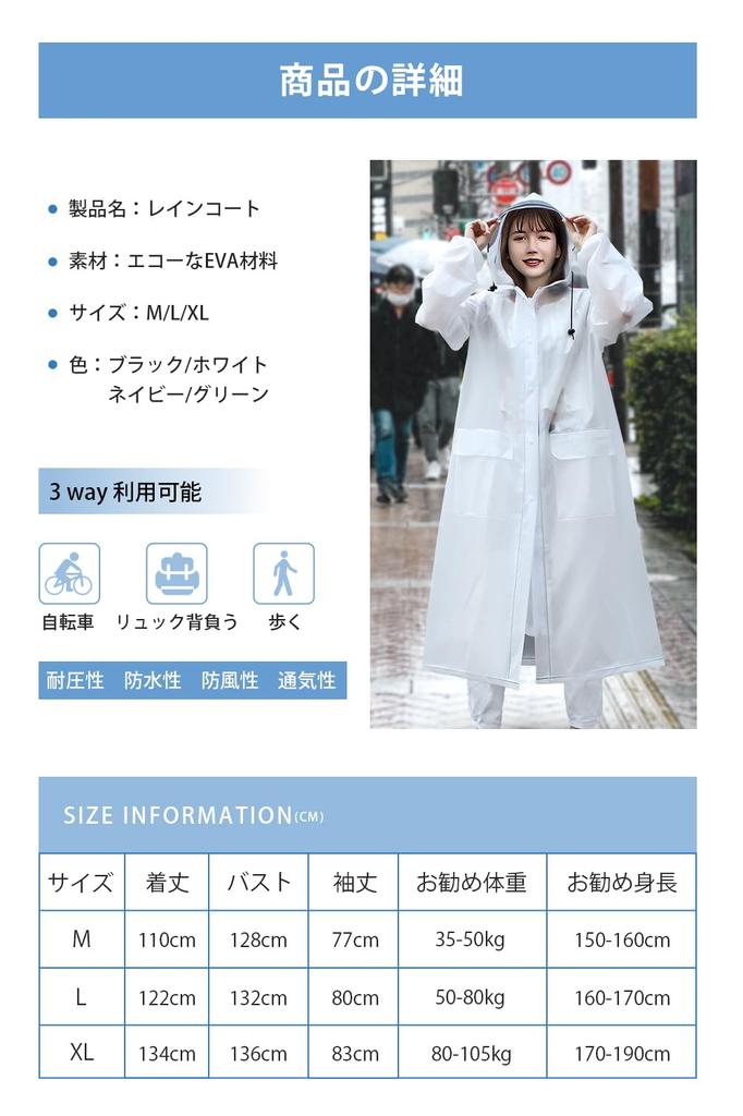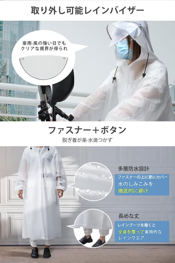 [Большой размер для мужчин и женщин] Этот дождевик можно использовать не только для прогулок по городу, но и для езды на велосипеде, мотоцикле и мопеде.. При расстегивании кнопки на спине он расширяется до большого размера, который можно удобно использовать даже при ношении рюкзака, а в дополнение к большой длине, закрывающей область ниже колен, он полностью закрывает ваше тело и защищает от дождя, при этом не стесняя и позволяя легко передвигаться.. Это дождевик-пончо идеально подходит для поездок на работу или в школу, а также является полезной мерой защиты от тайфунов и сезона дождей.