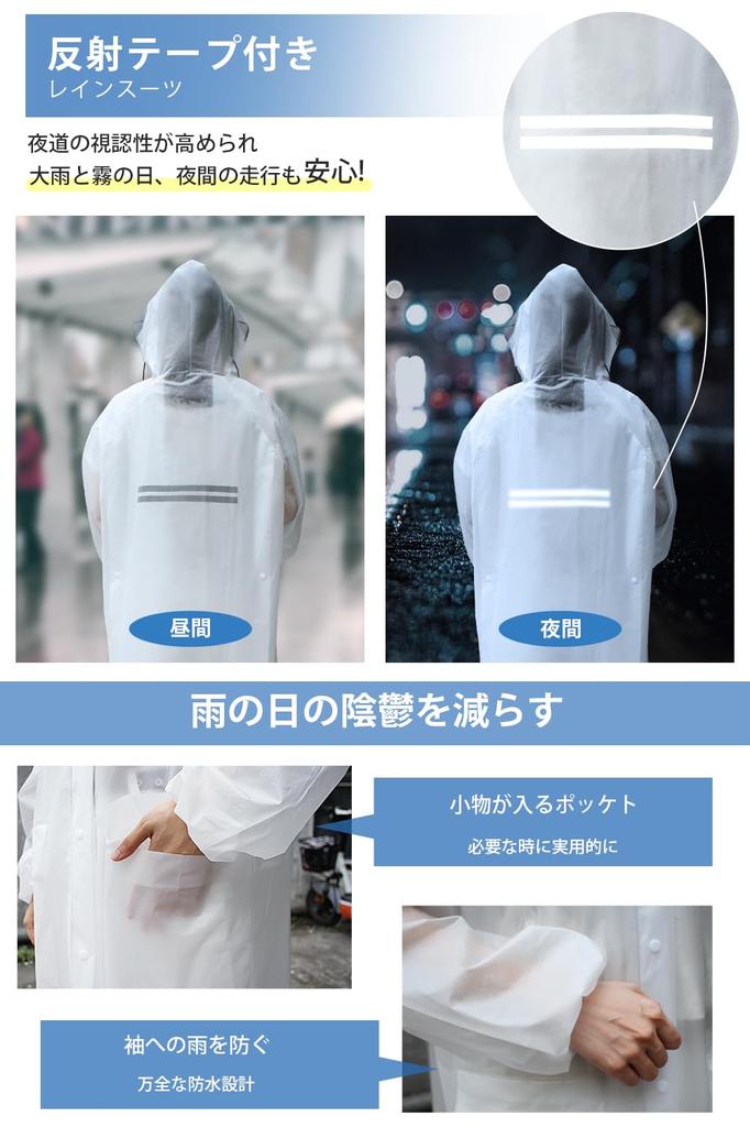 [Внимание к деталям] 1. Карман с клапаном: Удобно для хранения мелких предметов, таких как мобильные телефоны и ключи.. ② Резиновые манжеты: Предотвращает попадание дождя и ветра в рукава, удобно при езде на велосипеде или работе в дождливые дни.. ③ Светоотражающая лента на спине: Хорошо виден из автомобилей и т. д., что повышает безопасность даже ночью, когда идет дождь и плохая видимость.. Сделанный с упором на простоту использования в повседневной жизни, этот дождевик сочетает в себе дизайн и водонепроницаемость, что делает его более удобным и комфортным для использования во время прогулок или езды на велосипеде.