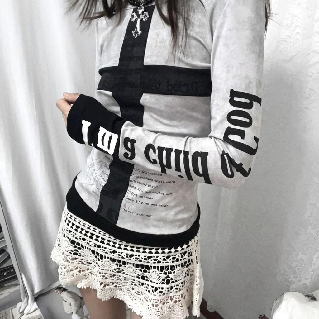 Осенний одно плечо сексуальный панк-дизайн Sense Cross с длинными рукавами Y2K Spicy Girl Slim Fit винтажные топы Тонкие и универсальные топы
