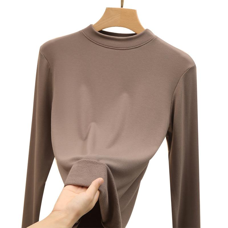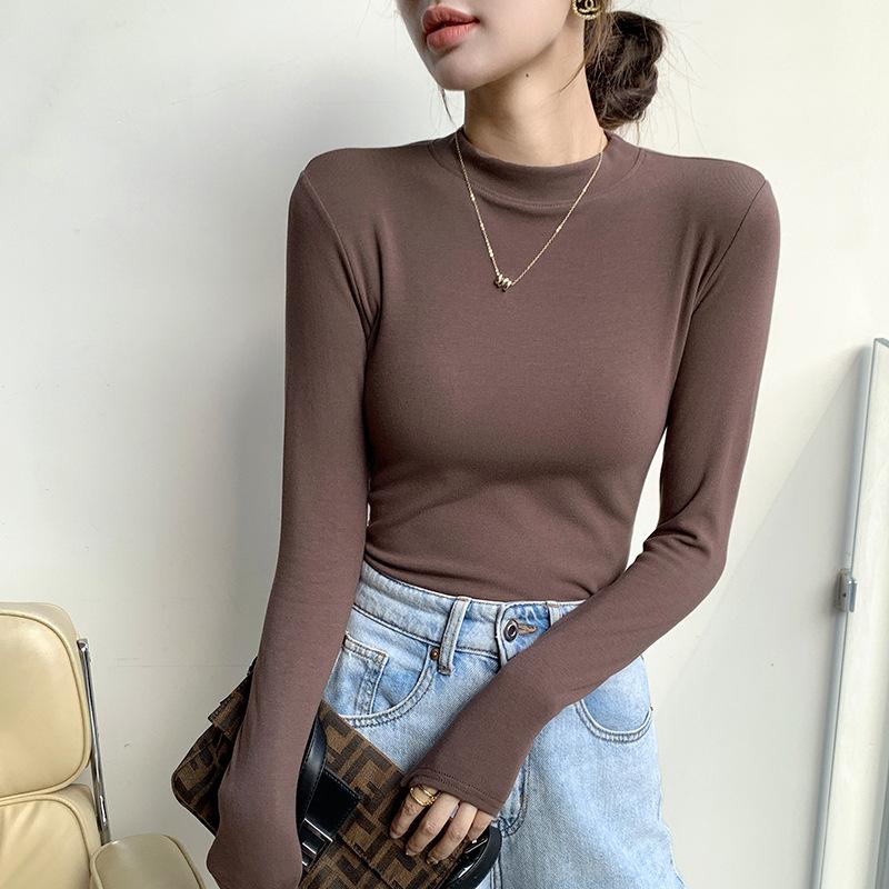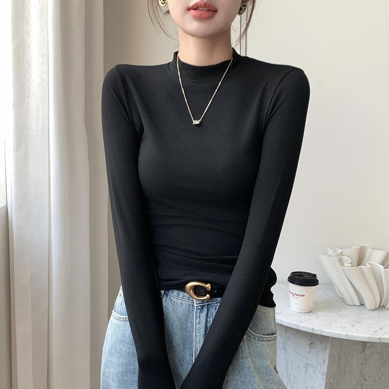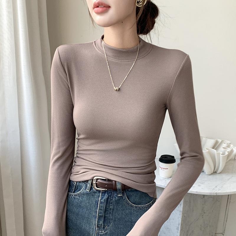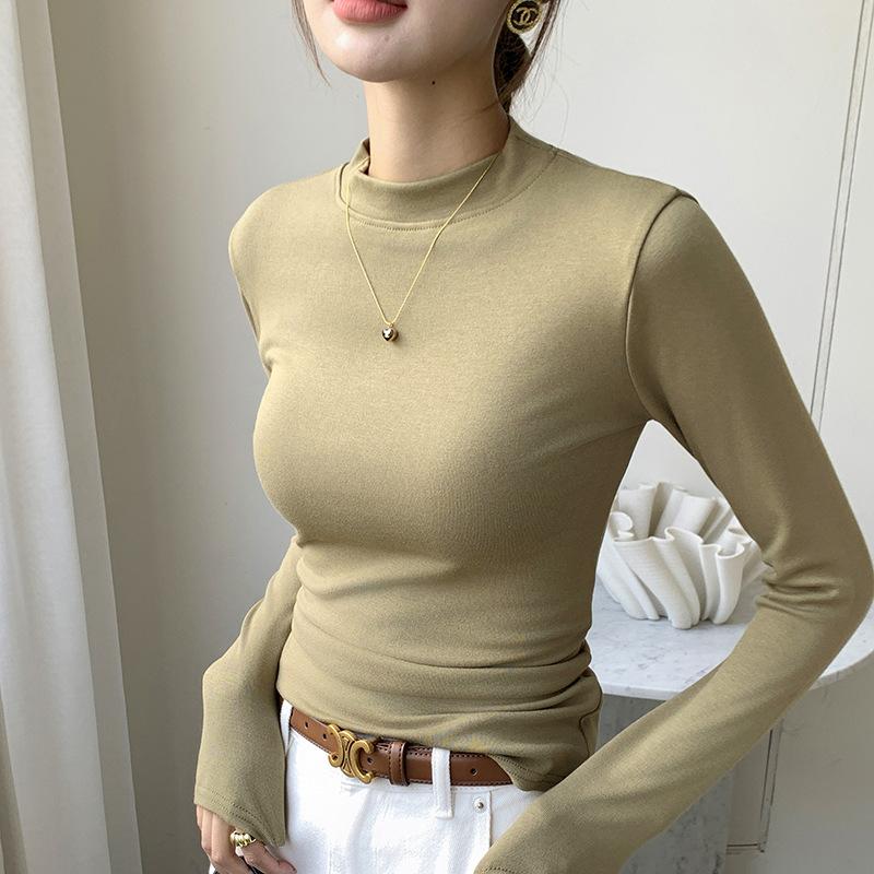 Женская рубашка с полуводолазкой на осень и зиму, утолщенный бархатный внутренний слой, высококачественный облегающий топ из матового белого цвета с длинными рукавами.