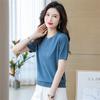 Женская летняя тонкая однотонная трикотажная футболка Hollow Ice Silk с коротким рукавом, новый модный топ с круглым вырезом