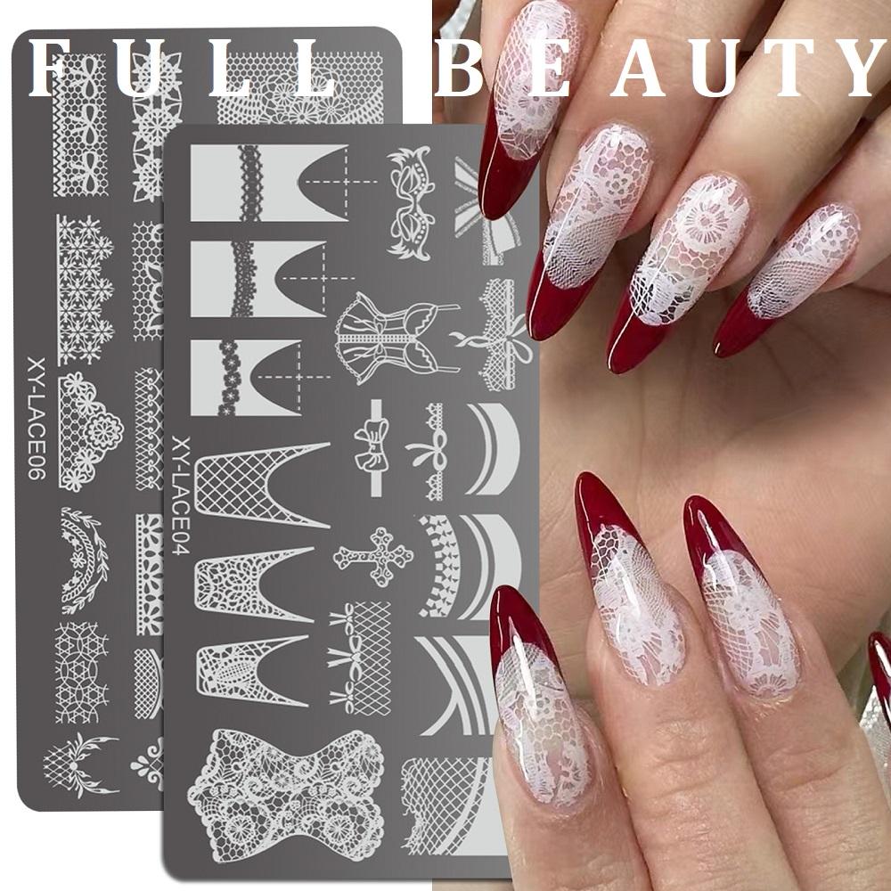 Французский стиль ногтей штампованные пластины кружево нержавеющая сталь трафареты печать на ногтях маникюрные инструменты для штамповки