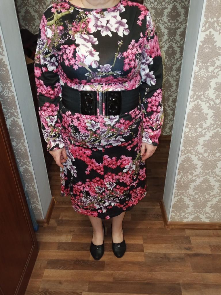 На самом деле платье выглядит как на фото. Указанные параметры талии 86 не соответствуют действительности. В 86 я бы не влезла не под каким маслом. Качество хорошее. Сшито аккуратно. Синтетика тянется. Троечку поставила за обман. На картинке другое платье.