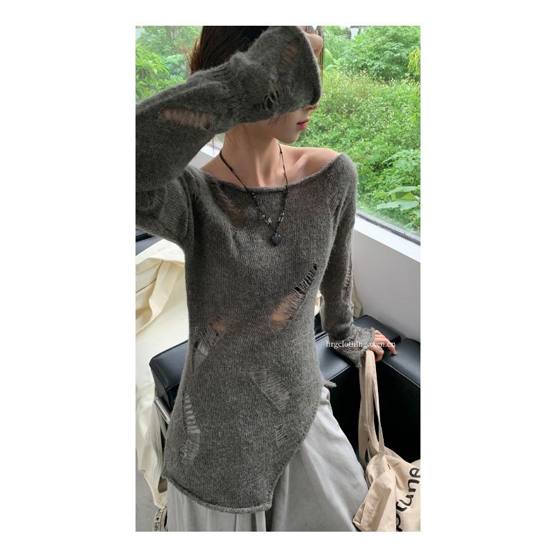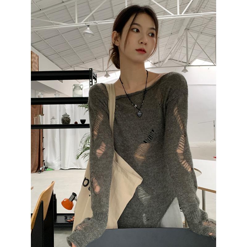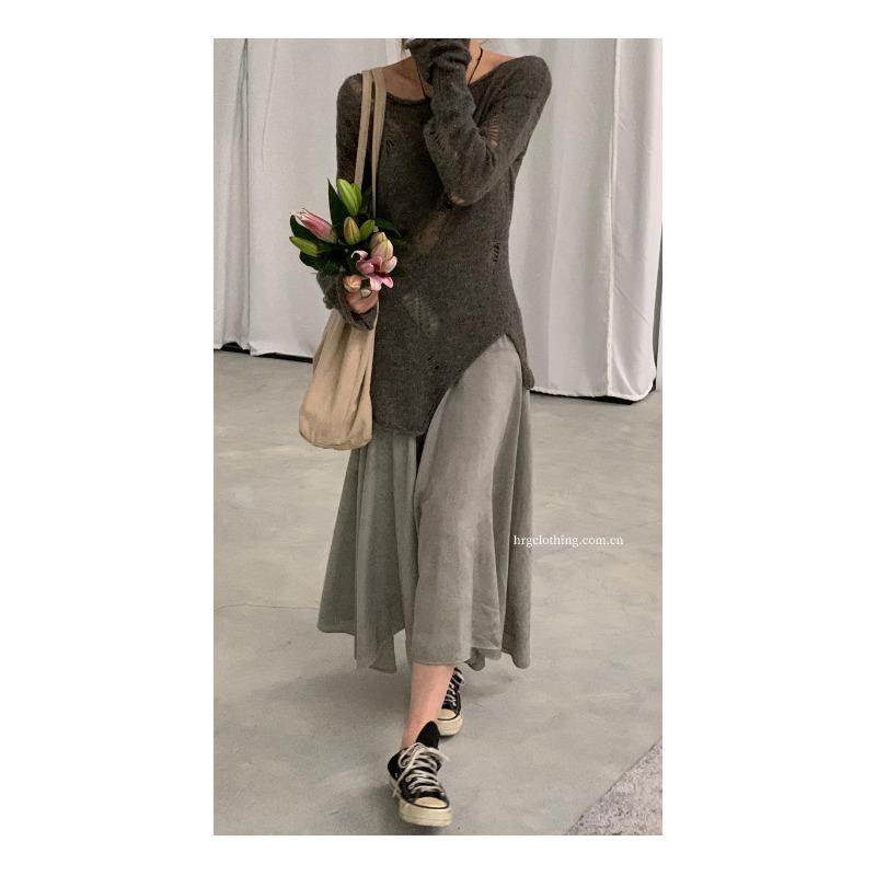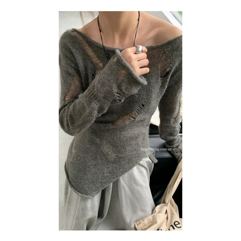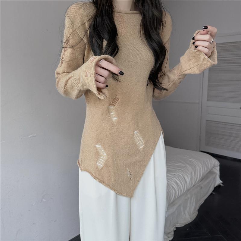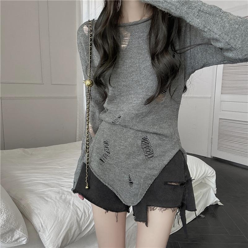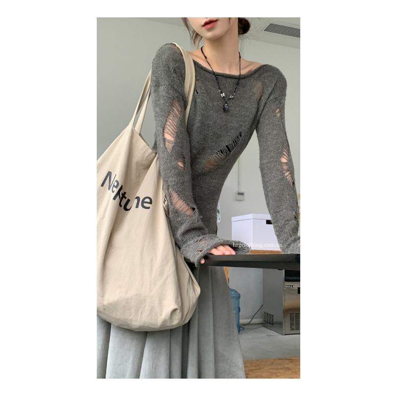Элегантная свободная женская солнцезащитная блузка на раннюю весну с длинными рукавами и отверстиями, закрывающими снаружи тонкий прозрачный трикотажный пуловер, длинный топ