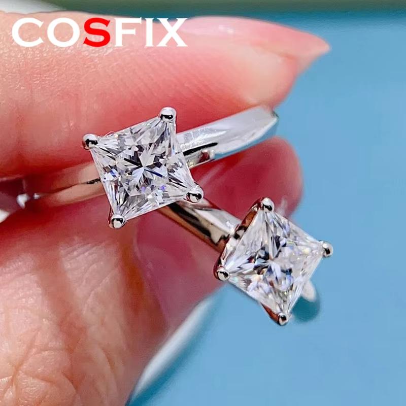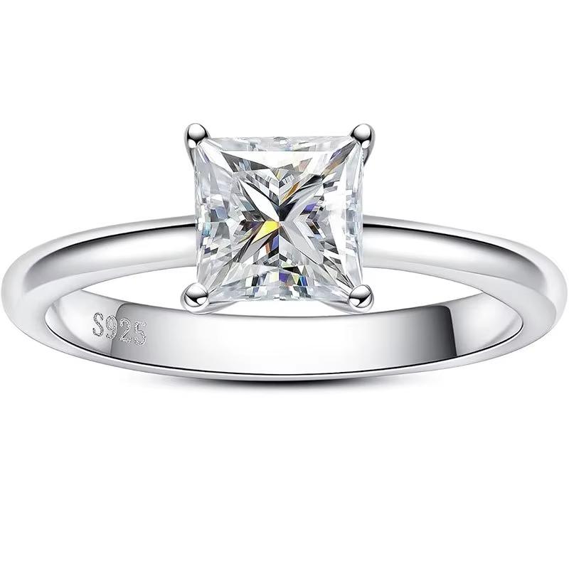 Женское кольцо с муассанитом огранки «Принцесса» 1-3 карата, обручальное кольцо с бриллиантами, серебряные кольца, кольца с муассанитом для женщин, роскошные женские кольца