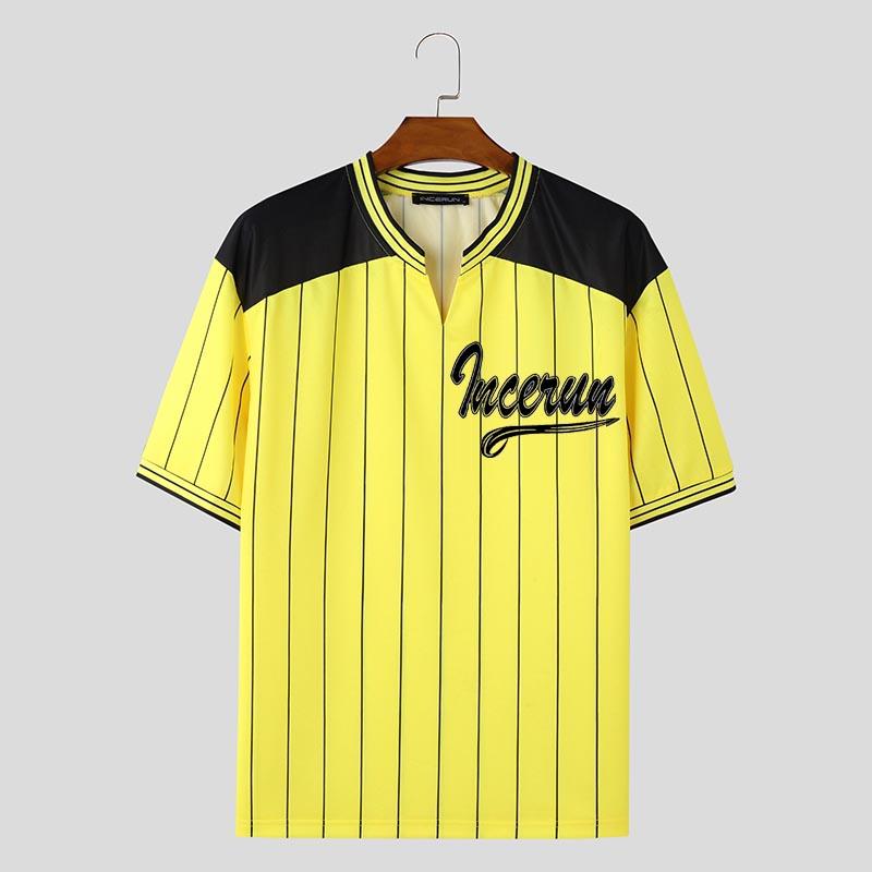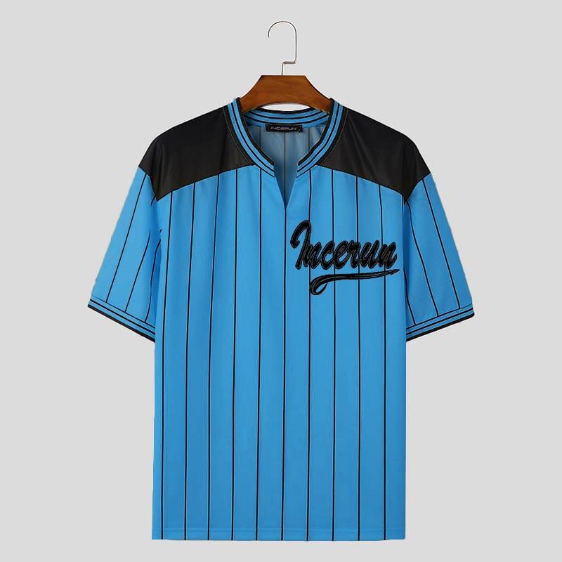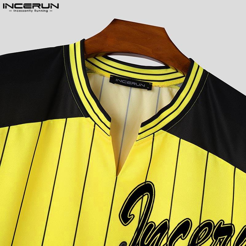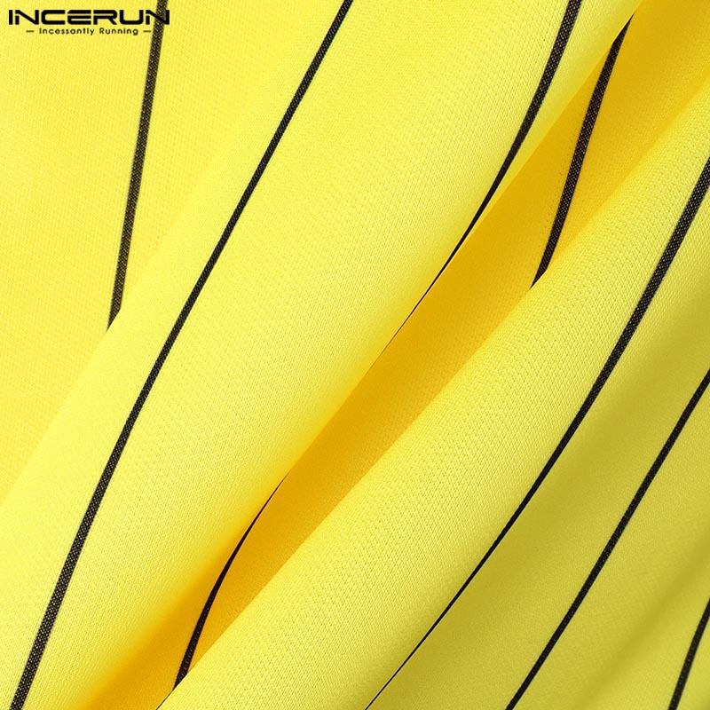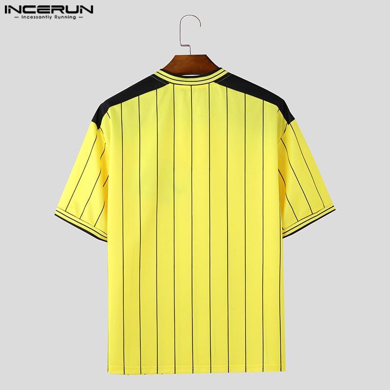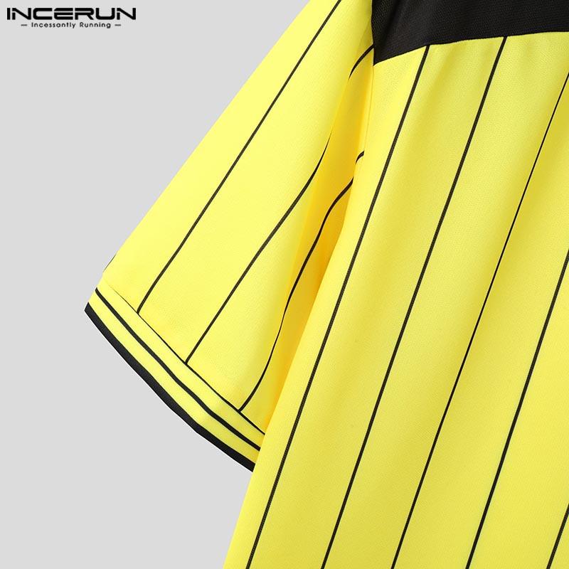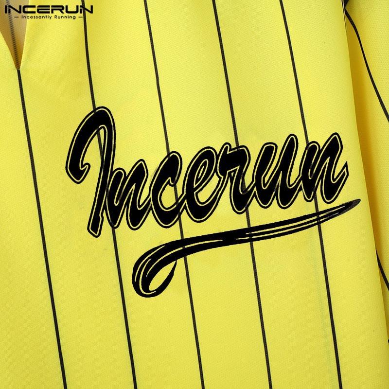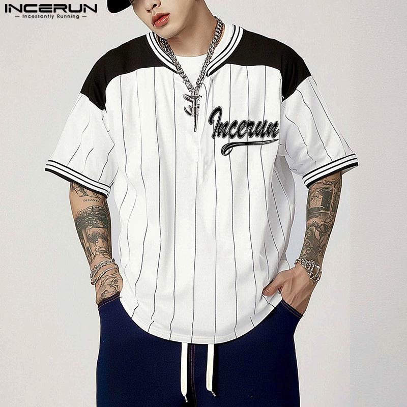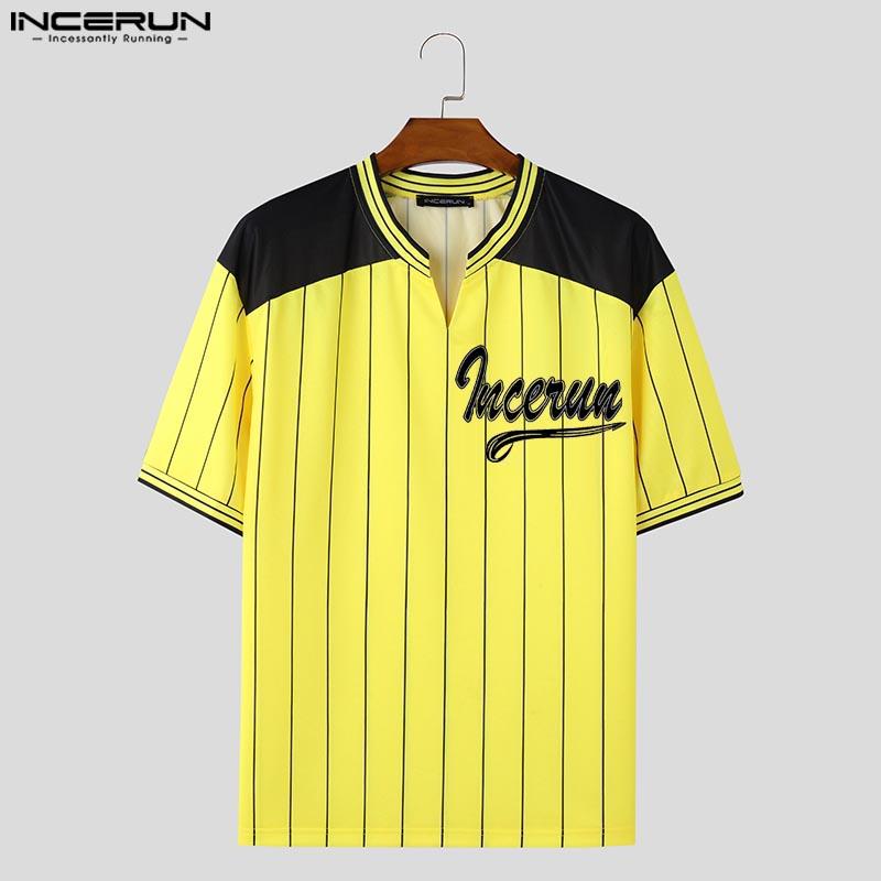 INCERUN Мужские летние футболки с короткими рукавами и полосатым принтом