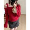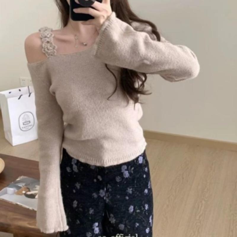 Ретро-свитера с открытыми плечами, свитера для женщин, осенние вязаные свитера с длинным рукавом, женские топы, элегантный шикарный цветочный слинг, винтажный зимний трикотаж 26052
