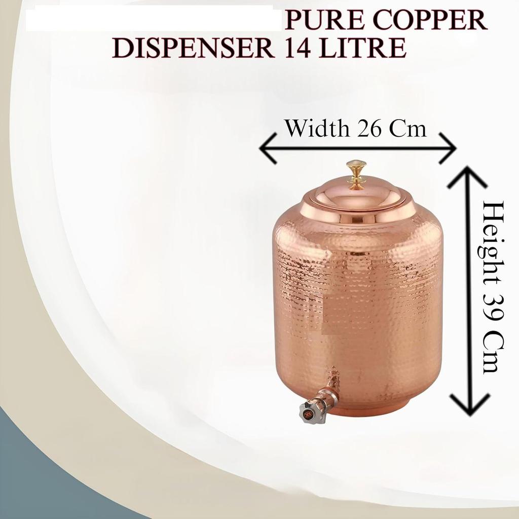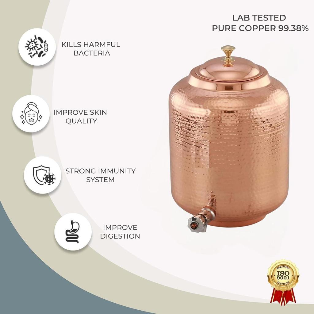 Диспенсер для воды из кованой меди на 14 литров (Матка) Горшок-контейнер с чистой медью и аюрведическими преимуществами для здоровья