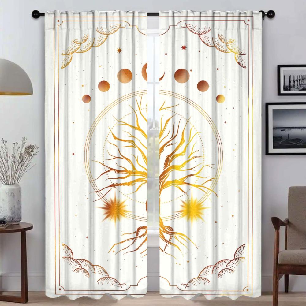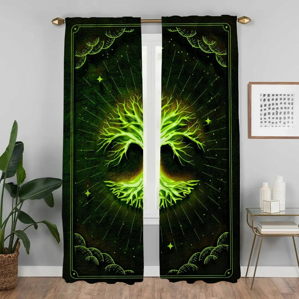 Плотные шторы для комнаты, 2 панели, Дерево жизни, современные шторы для гостиной, украшение на Хэллоуин, тюль для спальни, дома