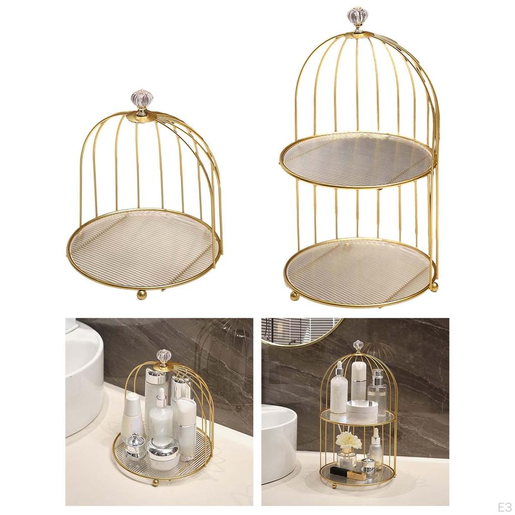 Косметическая полка в форме птичьей клетки, органайзер для макияжа, настольная подставка для торта для кухни и офиса