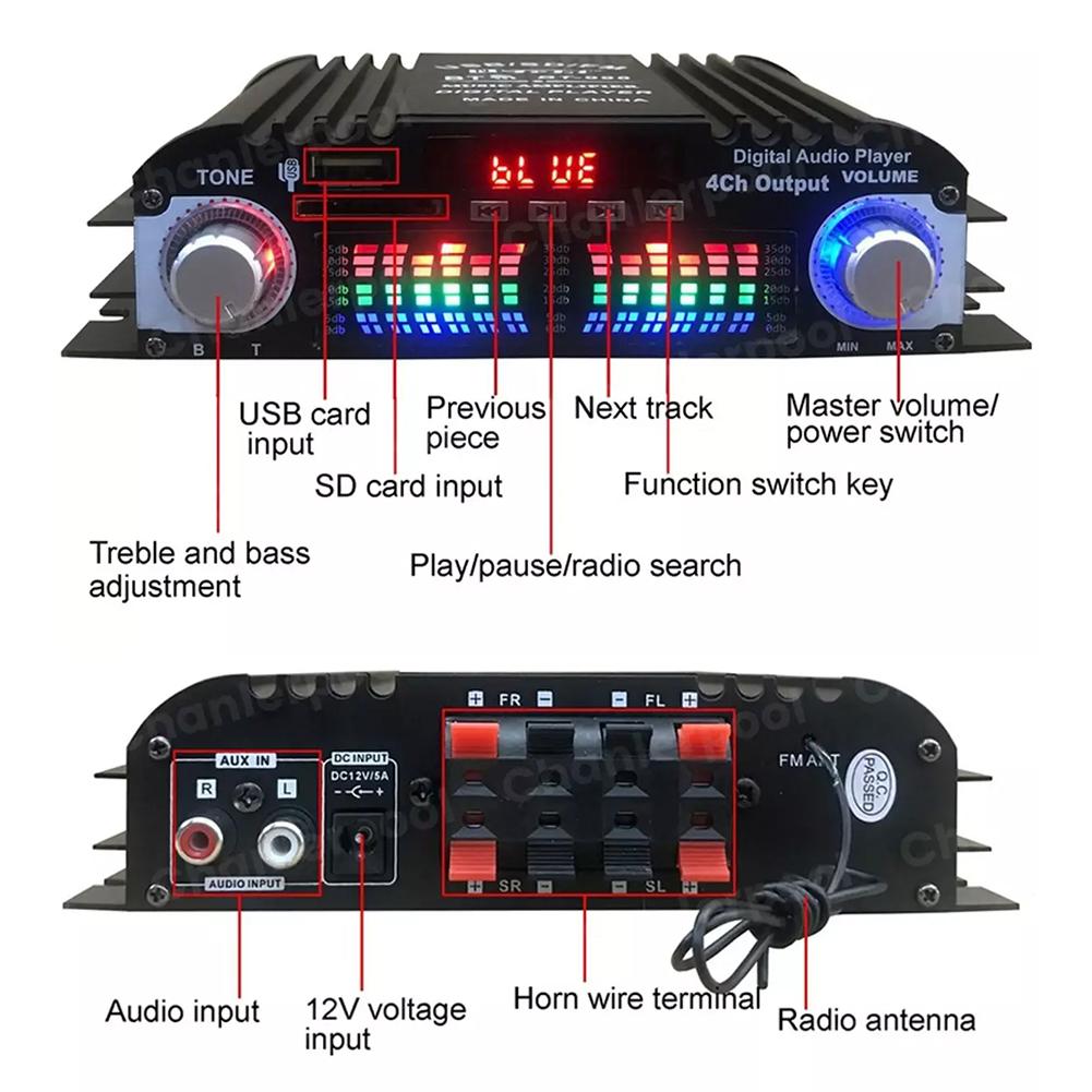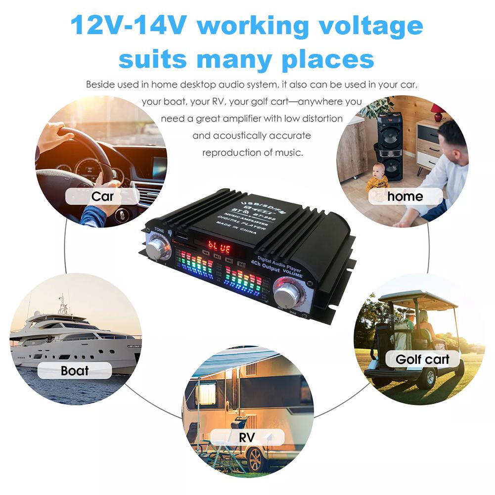 1600 Вт 12 В автомобильный BT HiFi стерео BT-998 кард-ридер USB с FM-радио USB Flash Auto Drive 4-канальный усилитель Инструменты дистанционного управления