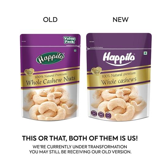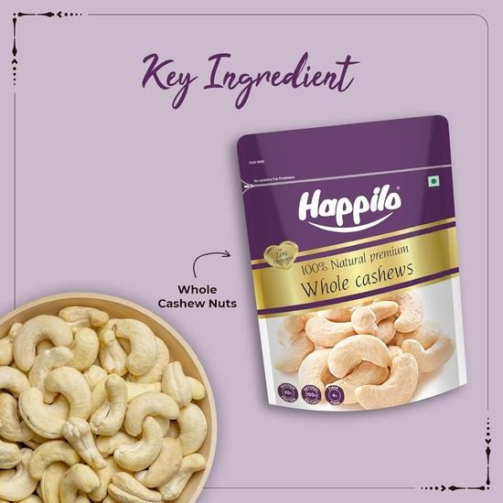 Happilo 100% натуральный цельный кешью премиум класса, 500 г, выгодная упаковка | Цельный хрустящий кешью | Орехи каджу премиум класса | Питательный и вкусный