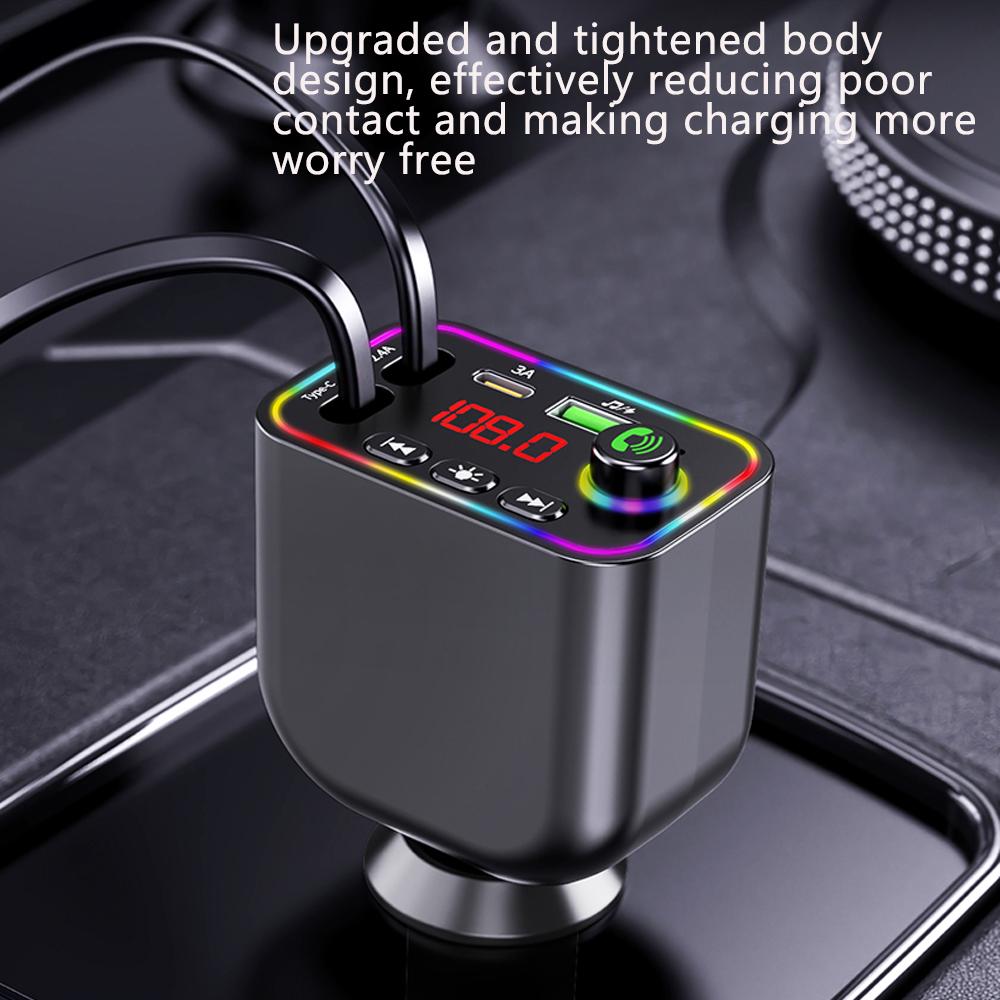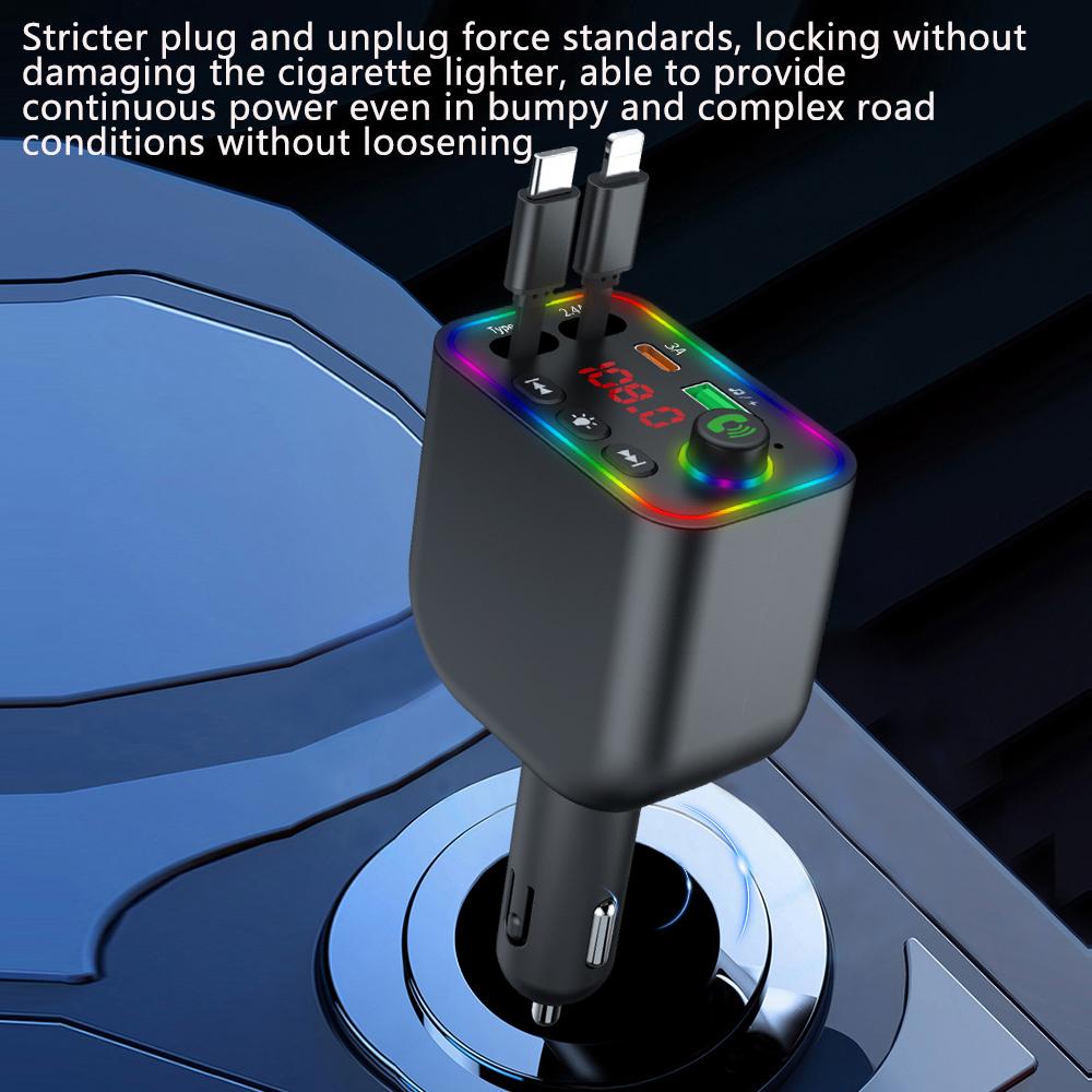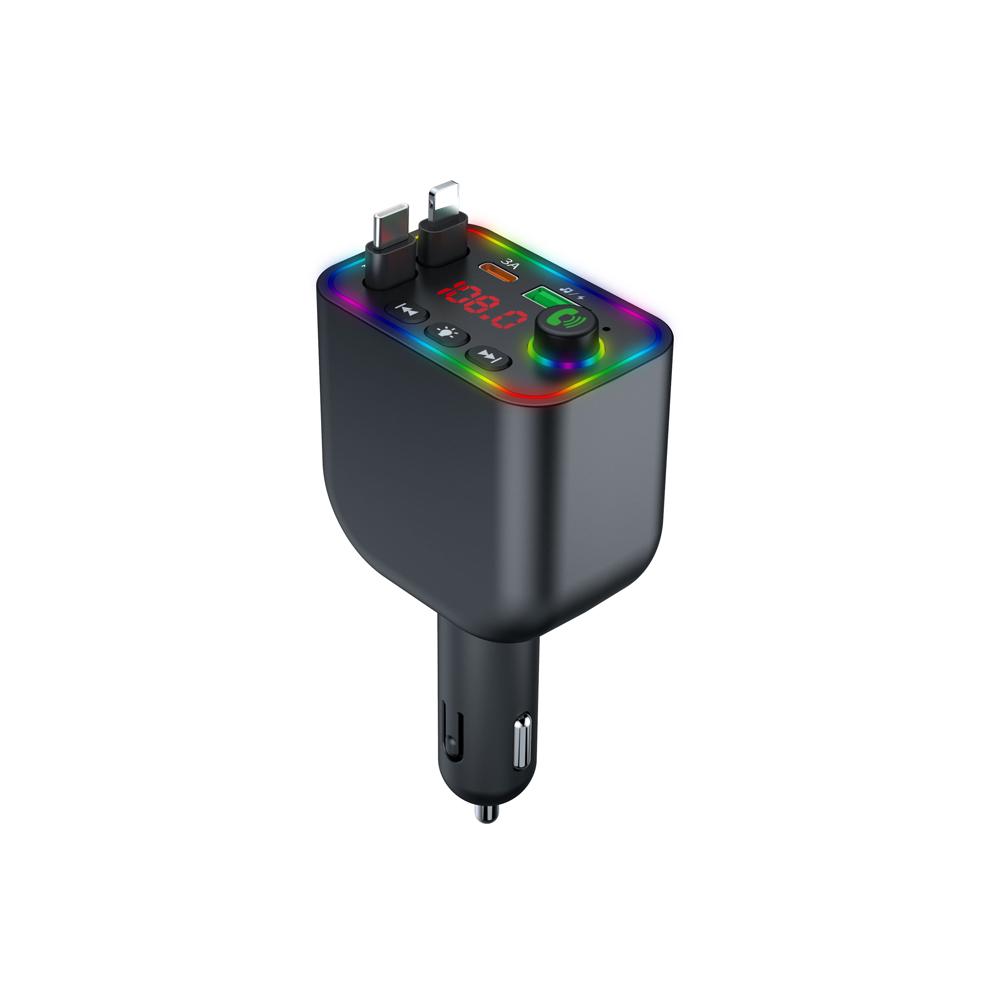 Светодиодный автомобильный Bluetooth 5.3 FM-передатчик беспроводной аудиоприемник автомобильный MP3-плеер PD быстрая зарядка с портом Apple Type-C кабель для зарядки
