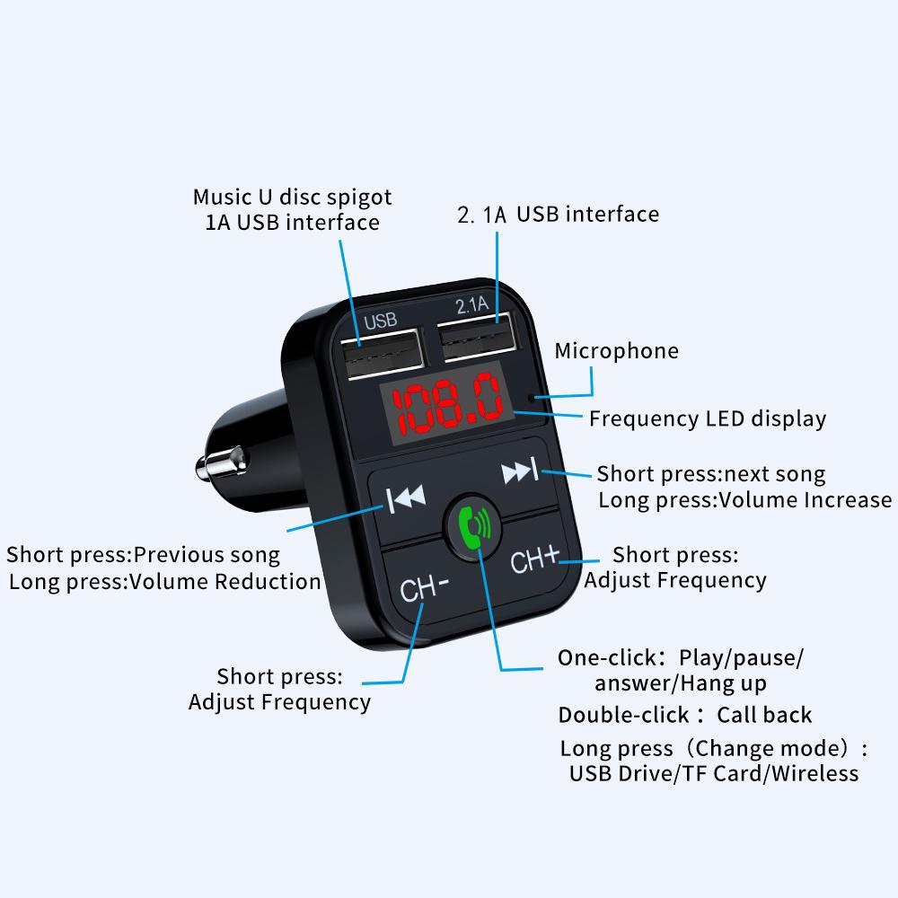 Автомобильное зарядное устройство FM-передатчик Bluetooth Audio Dual USB Автомобильный MP3-плеер Автомагнитола Зарядное устройство Handsfree Быстрое зарядное устройство Автомобильные аксессуары