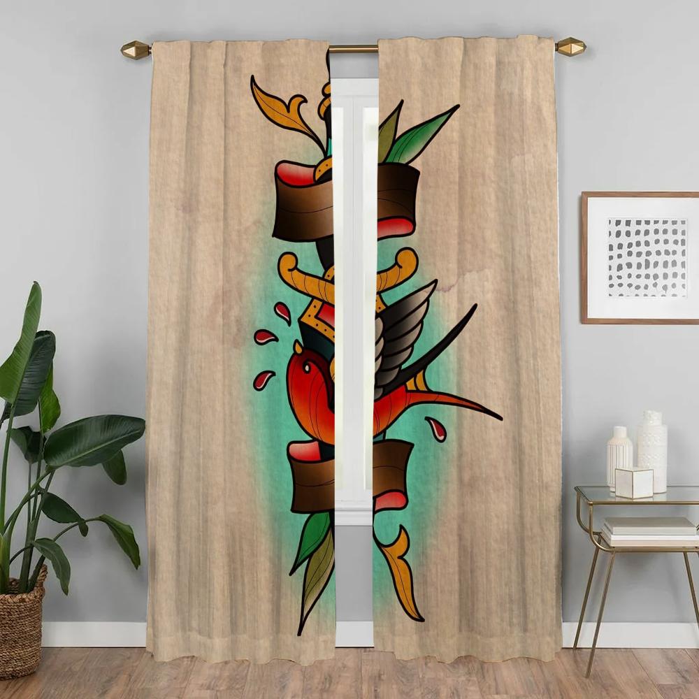 Оконная штора для комнаты 2 панели New School Tattoo кухонные шторы жалюзи перегородка тюль для спальни домашний интерьер шторы